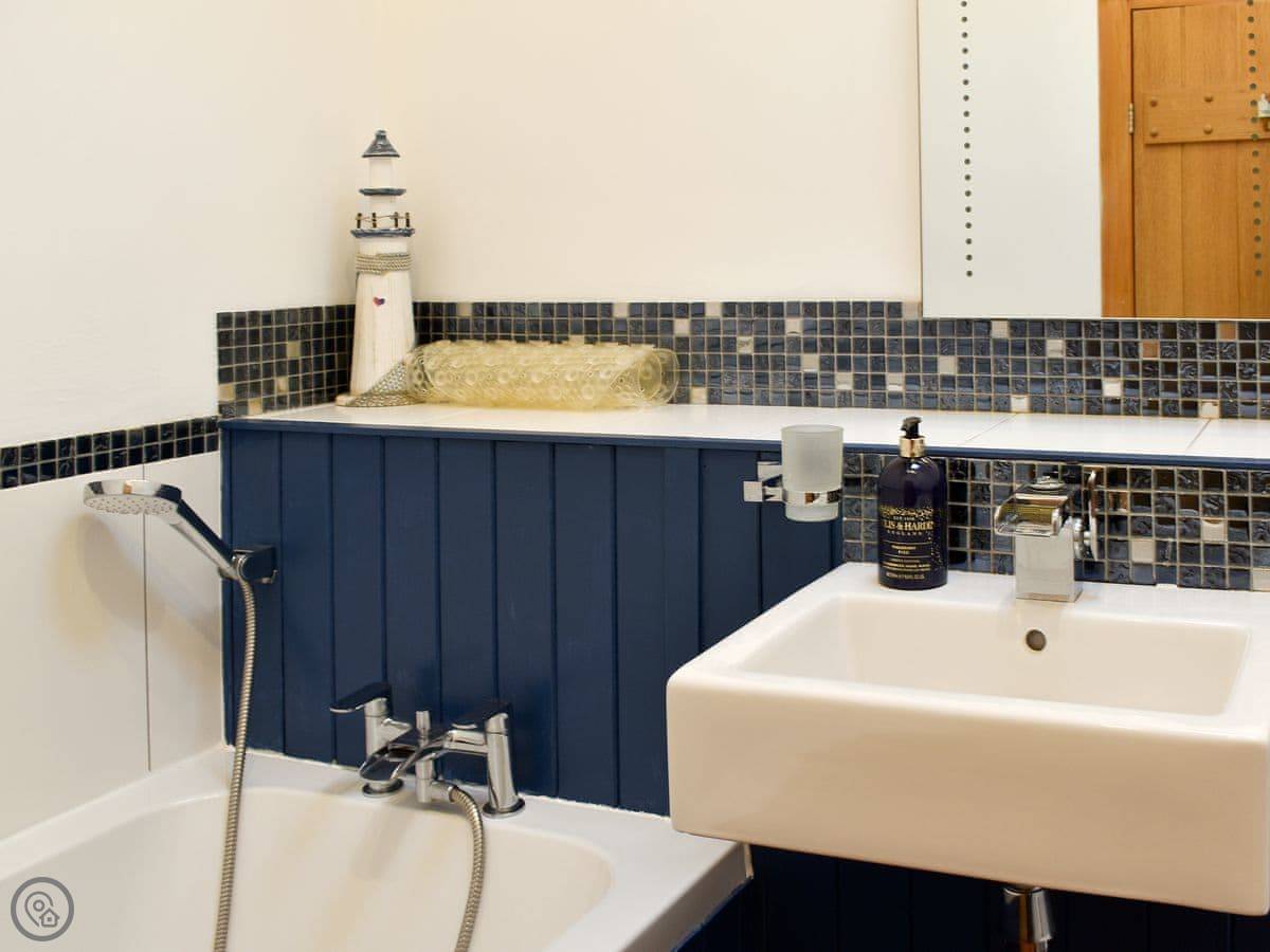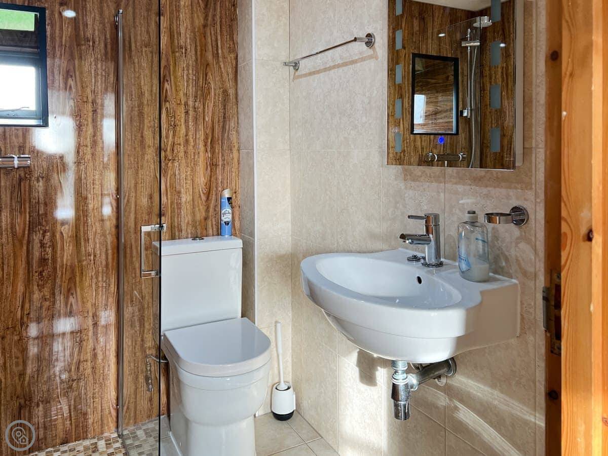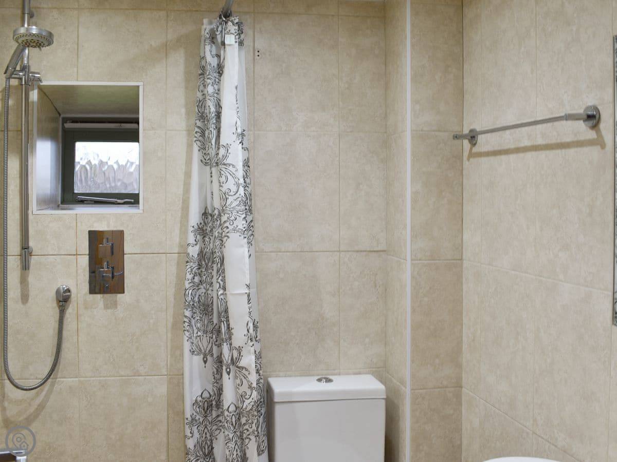 It sleeps six. Three bedrooms and two bathrooms. The rating is 5 Star, which mainly means it's well-equipped and kept to a high standard. One of the bathrooms is a wet room, which is useful if you've been on the beach.