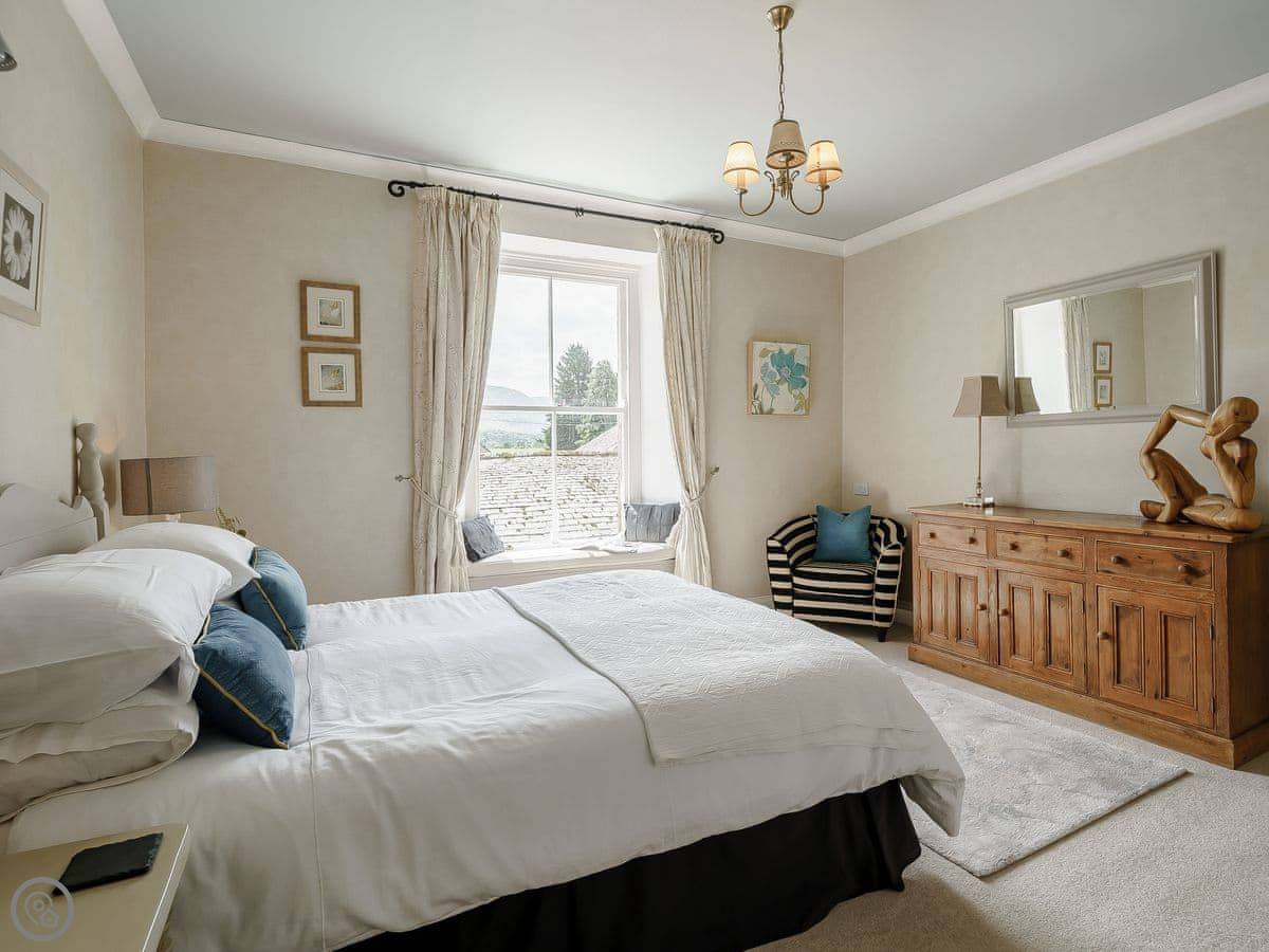 Holly House is in Pooley Bridge, right in the centre of the village. It's a five bedroom house, sleeps ten. There's a pub and a shop about thirty yards away.