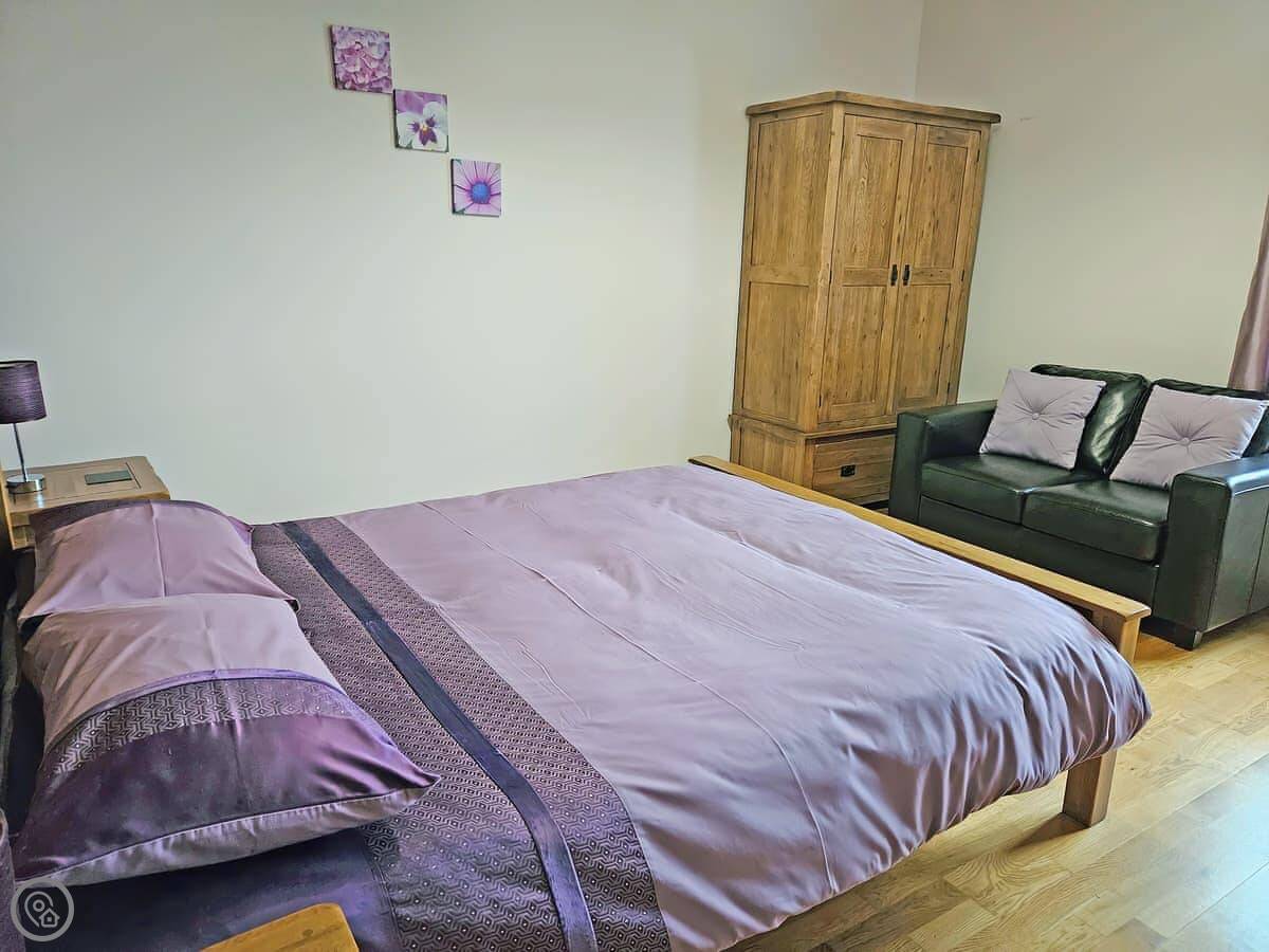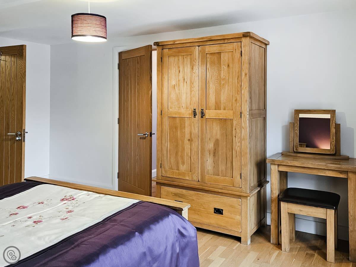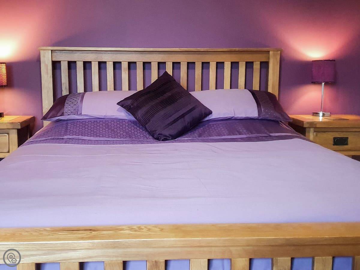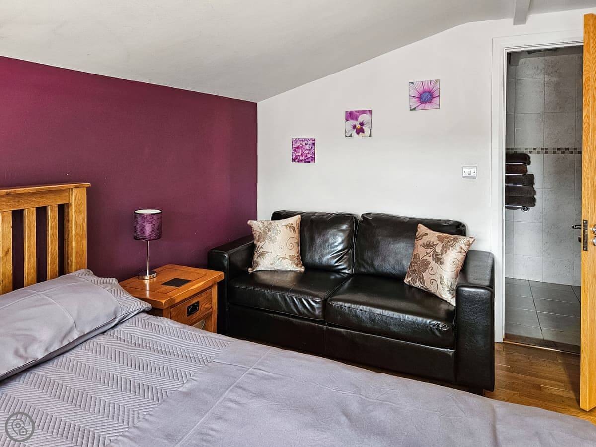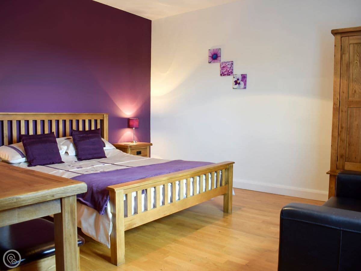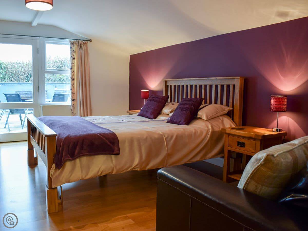 Outside, you have your own enclosed patio with a hot tub. There's parking right outside your door. The views are over fields. We've got a barn owl that lives around the place, so you might see it in the evening.