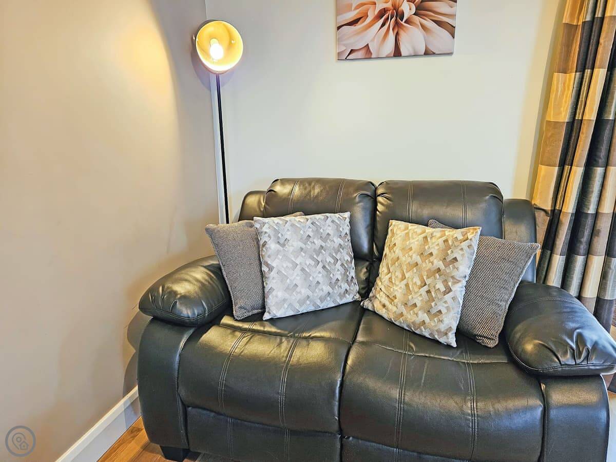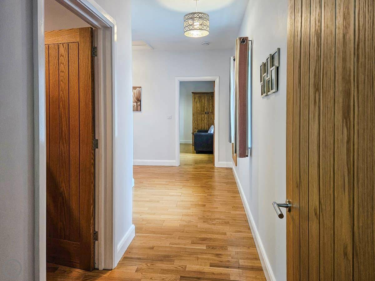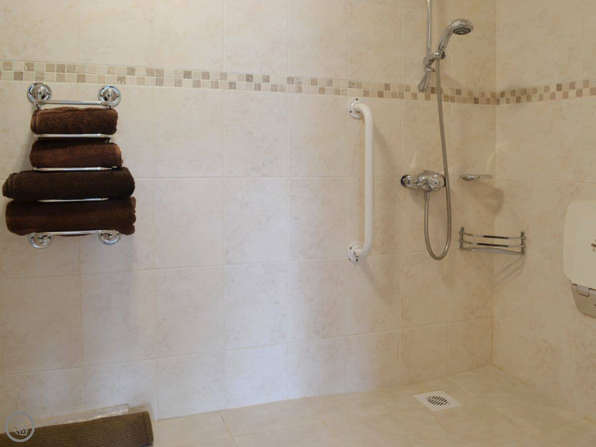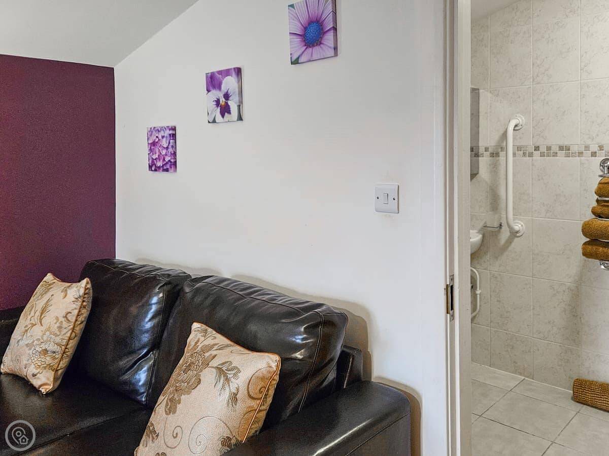 The layout is all on one level, which is good if stairs are a problem. There are two bathrooms, one of which is a wet room with grab rails. The living area is open plan. It's clean and modern but keeps the character of the old building.