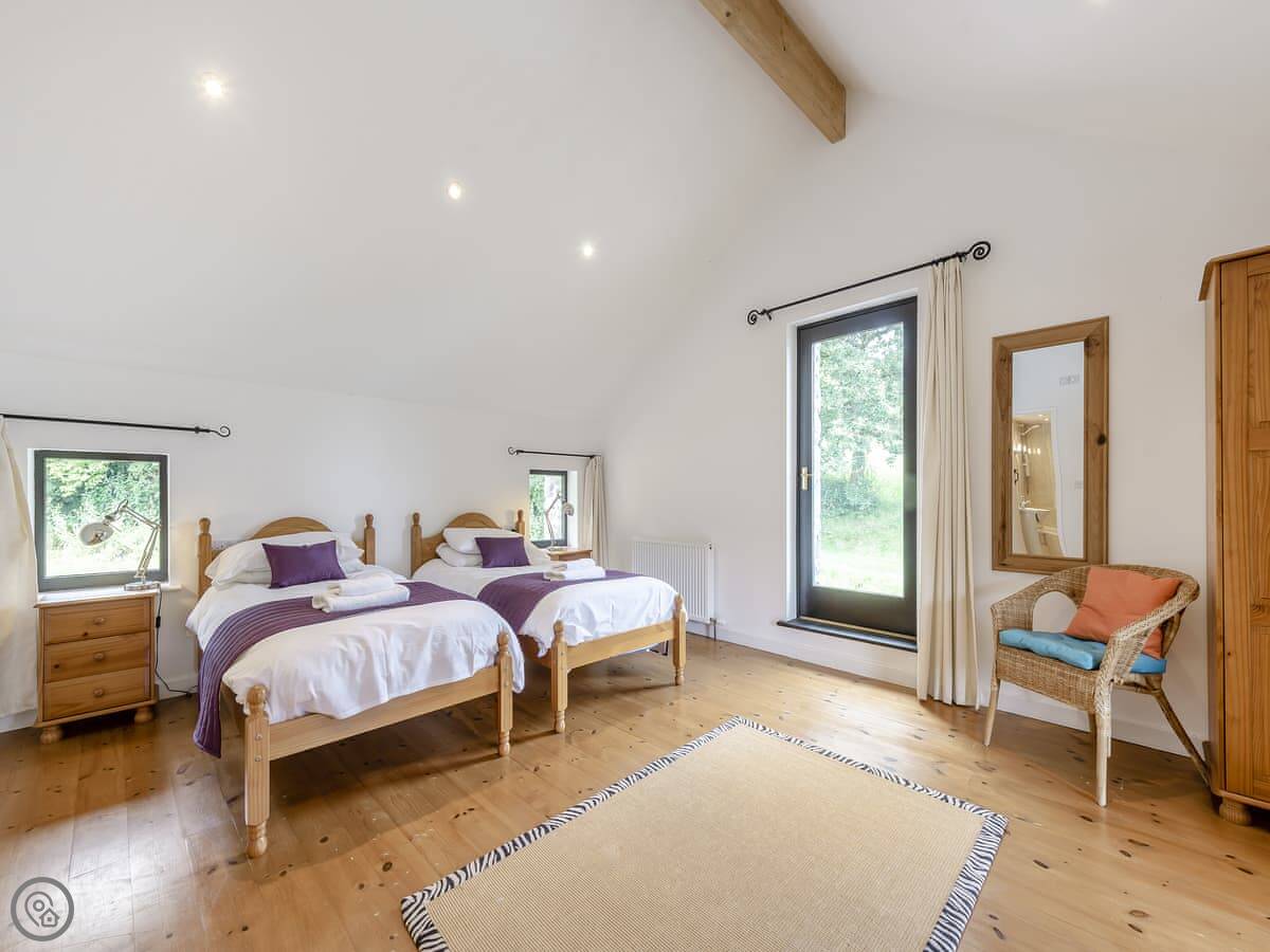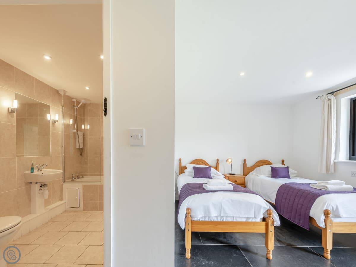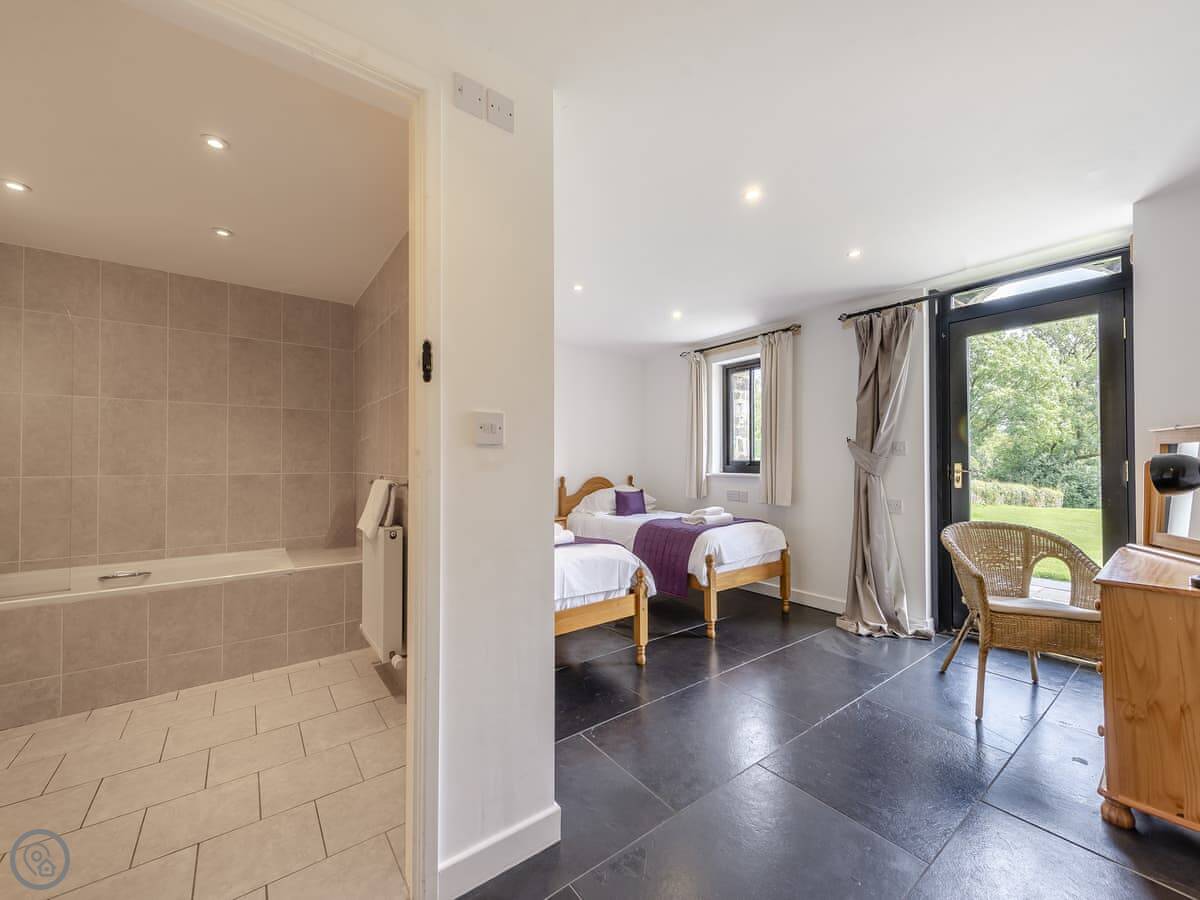 It sleeps eleven. There are five bedrooms and, usefully, five bathrooms, each one en-suite. They're all made up with bedding and towels before you arrive. Two of the bedrooms are on the ground floor.