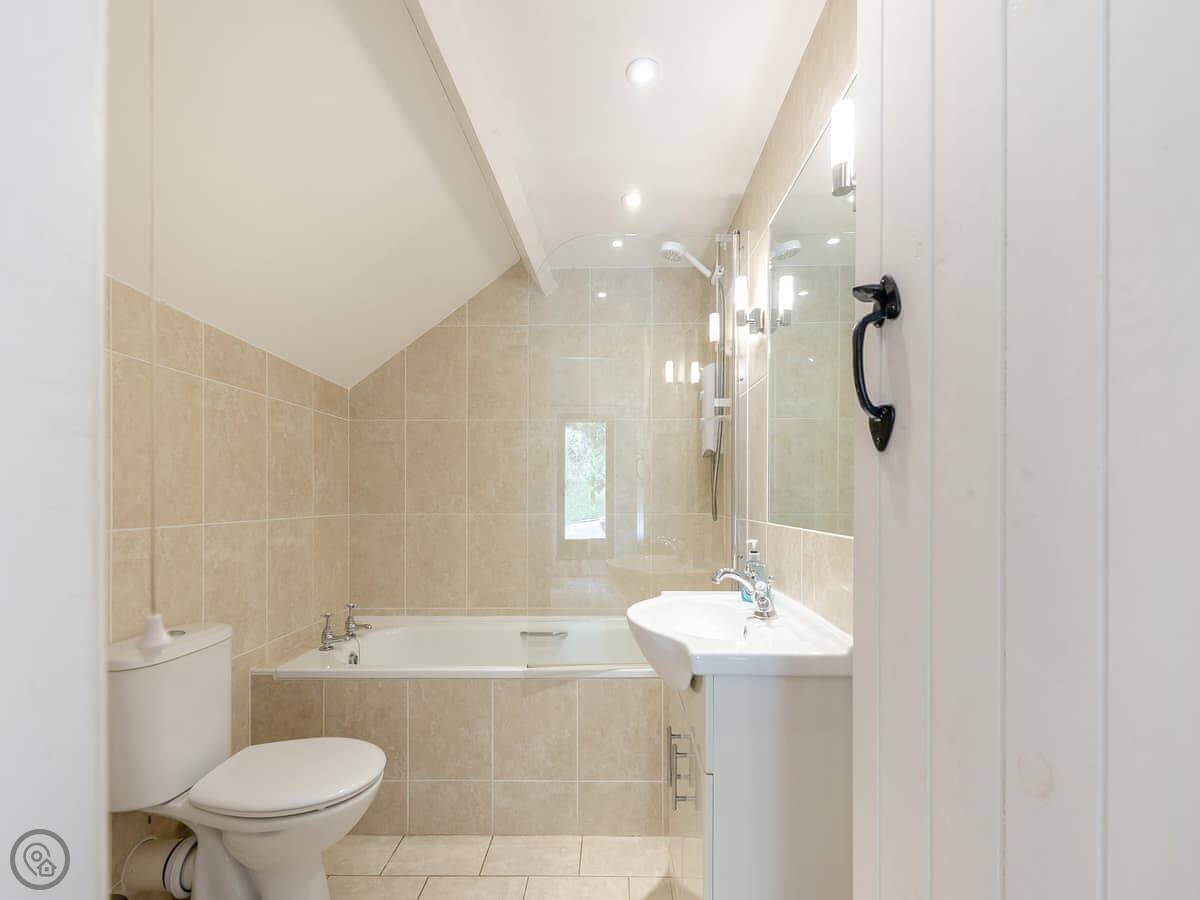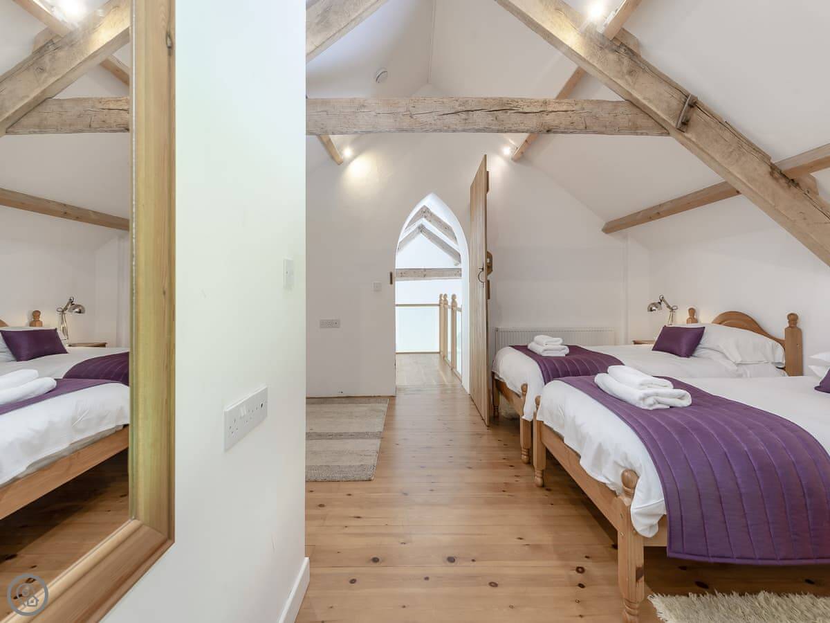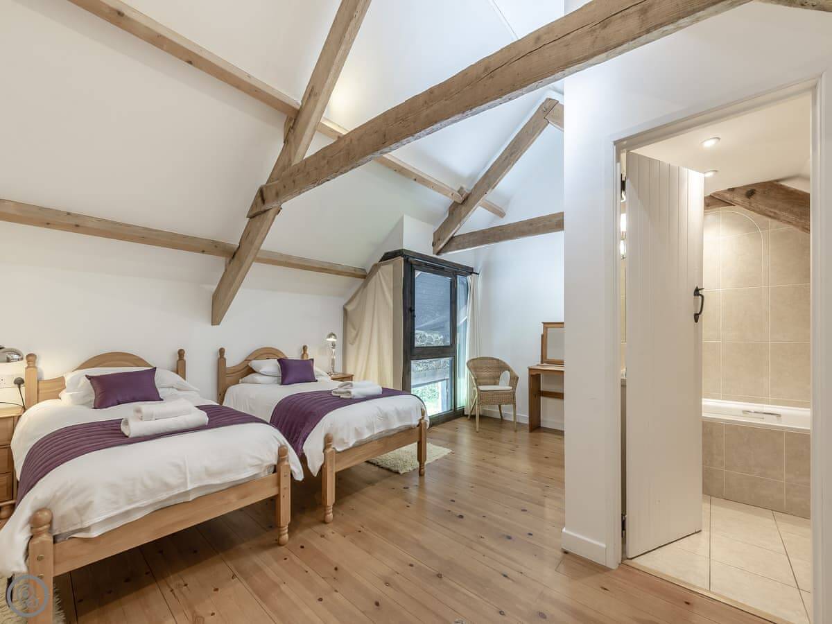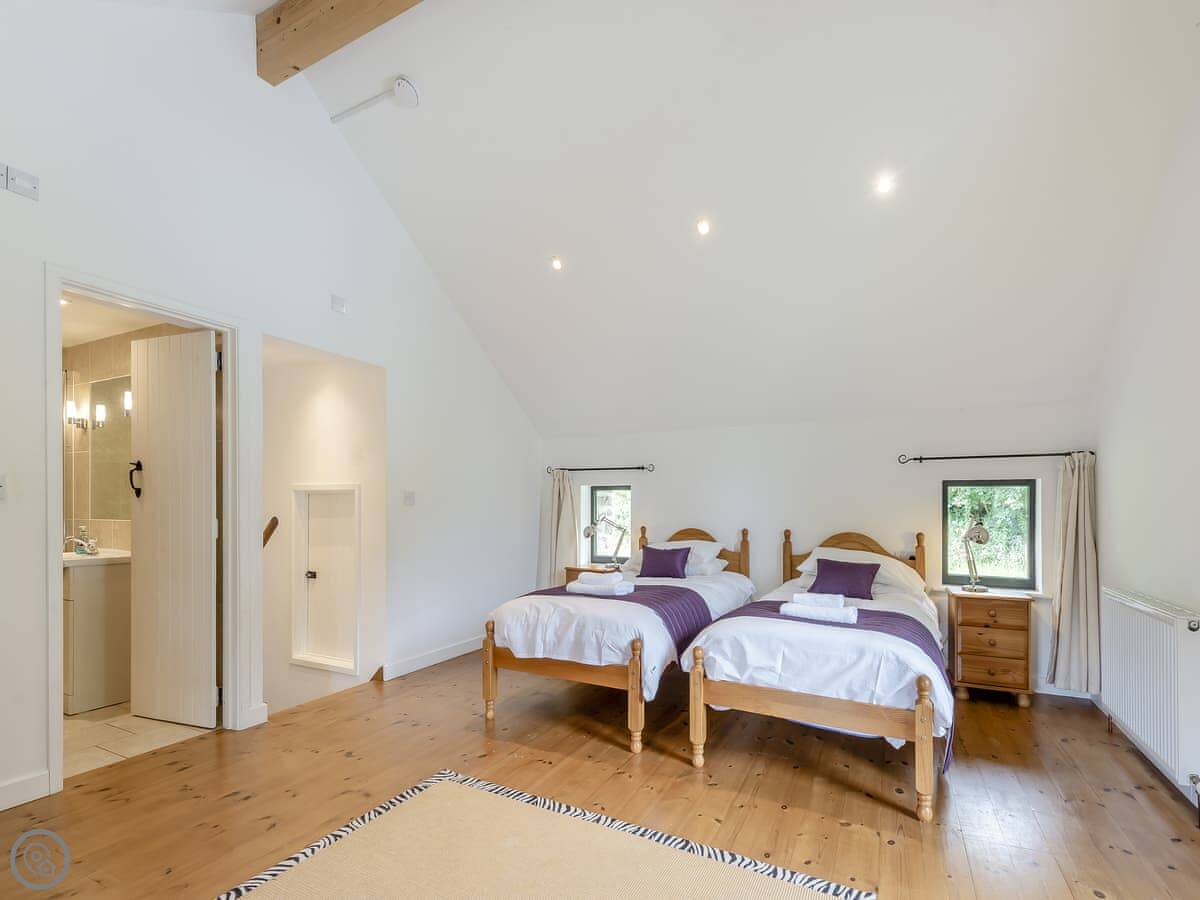 It sleeps eleven. There are five bedrooms and, usefully, five bathrooms, each one en-suite. They're all made up with bedding and towels before you arrive. Two of the bedrooms are on the ground floor.