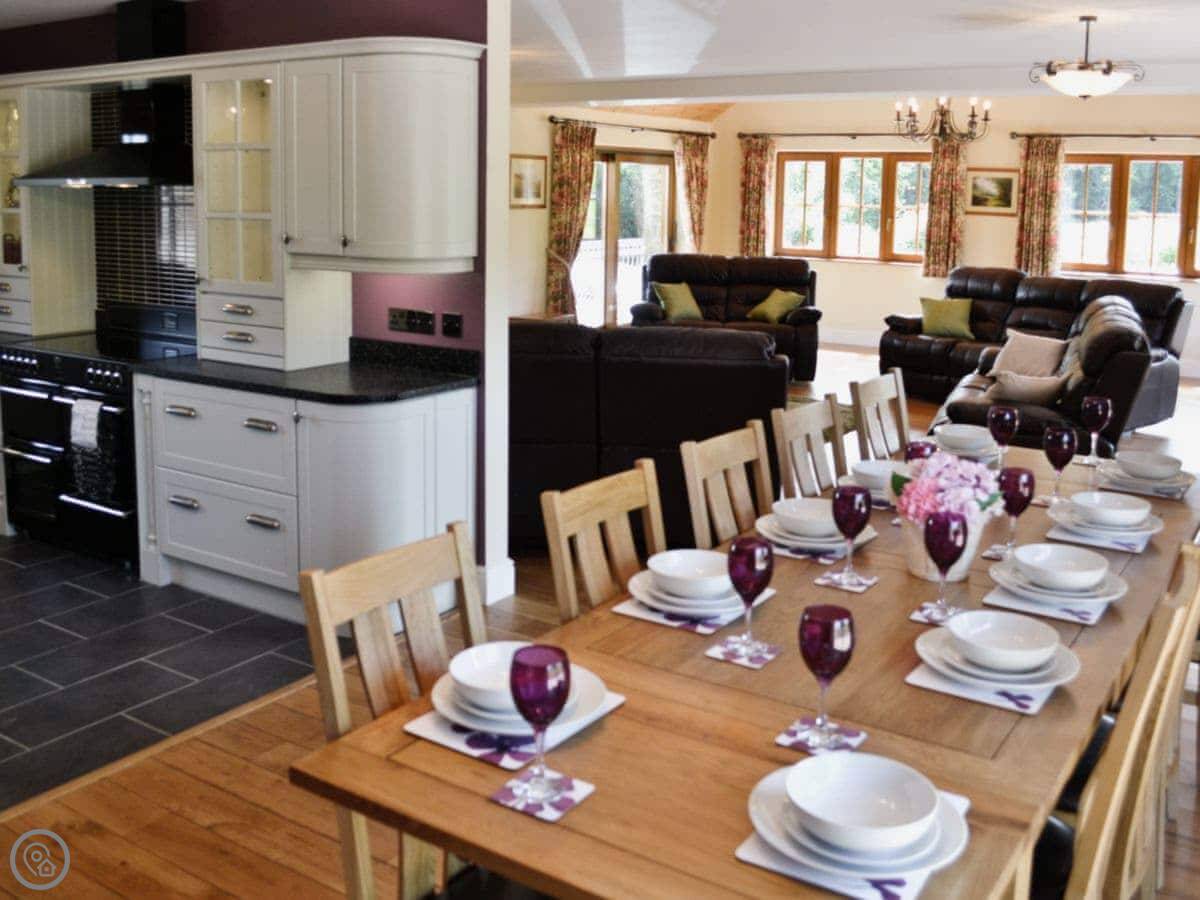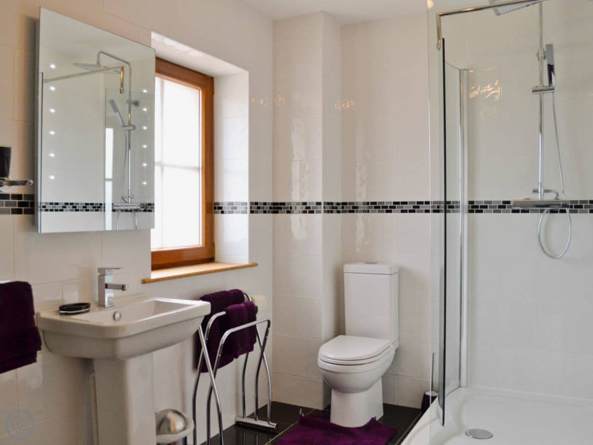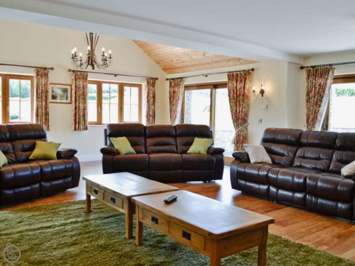 It sleeps ten people. Five bedrooms, four bathrooms. It's got a 5 Star rating, which means it's well-equipped and comfortable. It's a stable conversion, so the rooms are a good size and the ceilings are high.