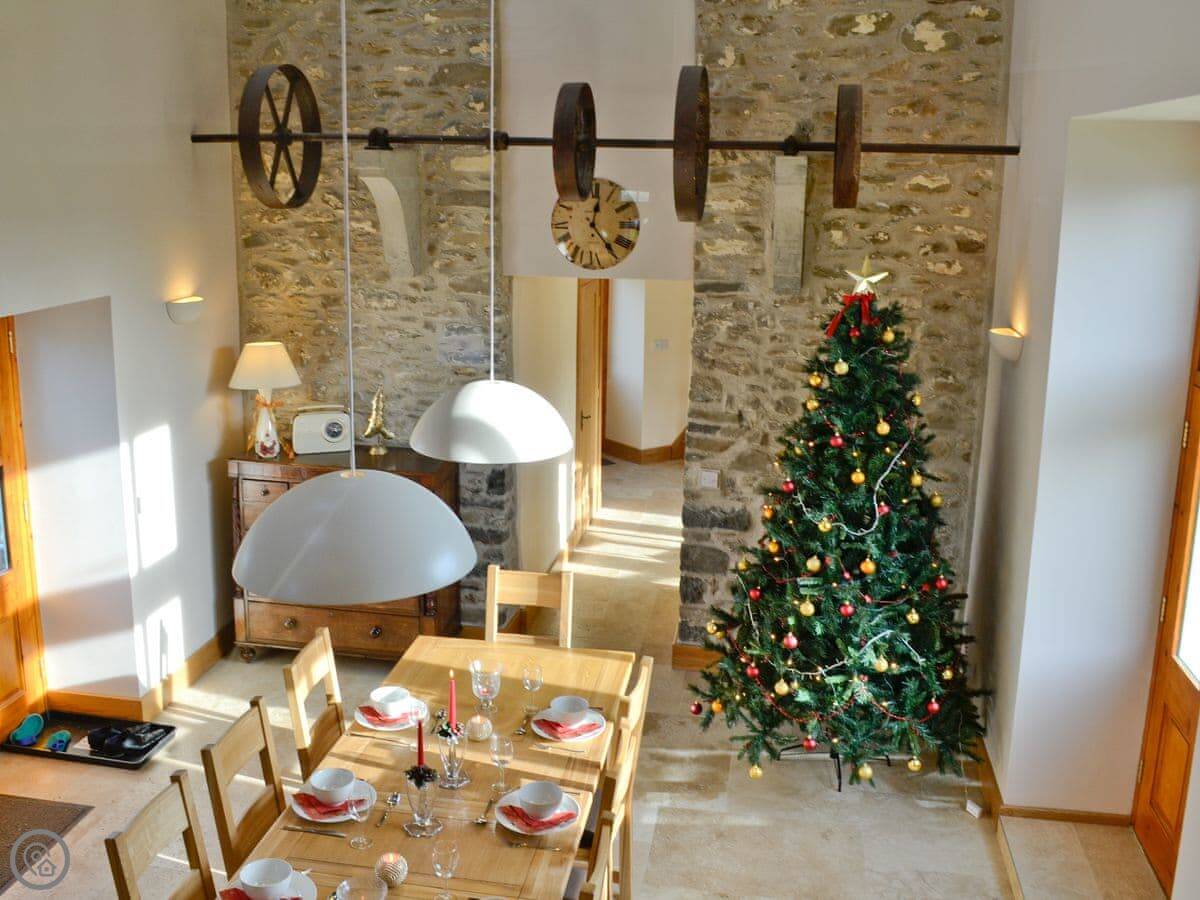 The main things are the space and the original features. The old cast-iron driving wheels and stone walls are still there. There are two living areas, a big vaulted dining space, and a games room. Two of the bedrooms have balconies. You can watch red kites from them. We're in a Dark Skies area, so the star viewing can be very good on a clear night.
