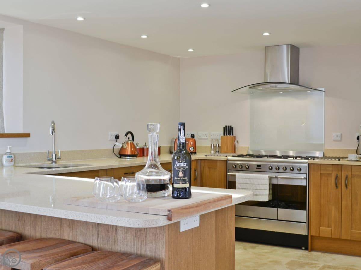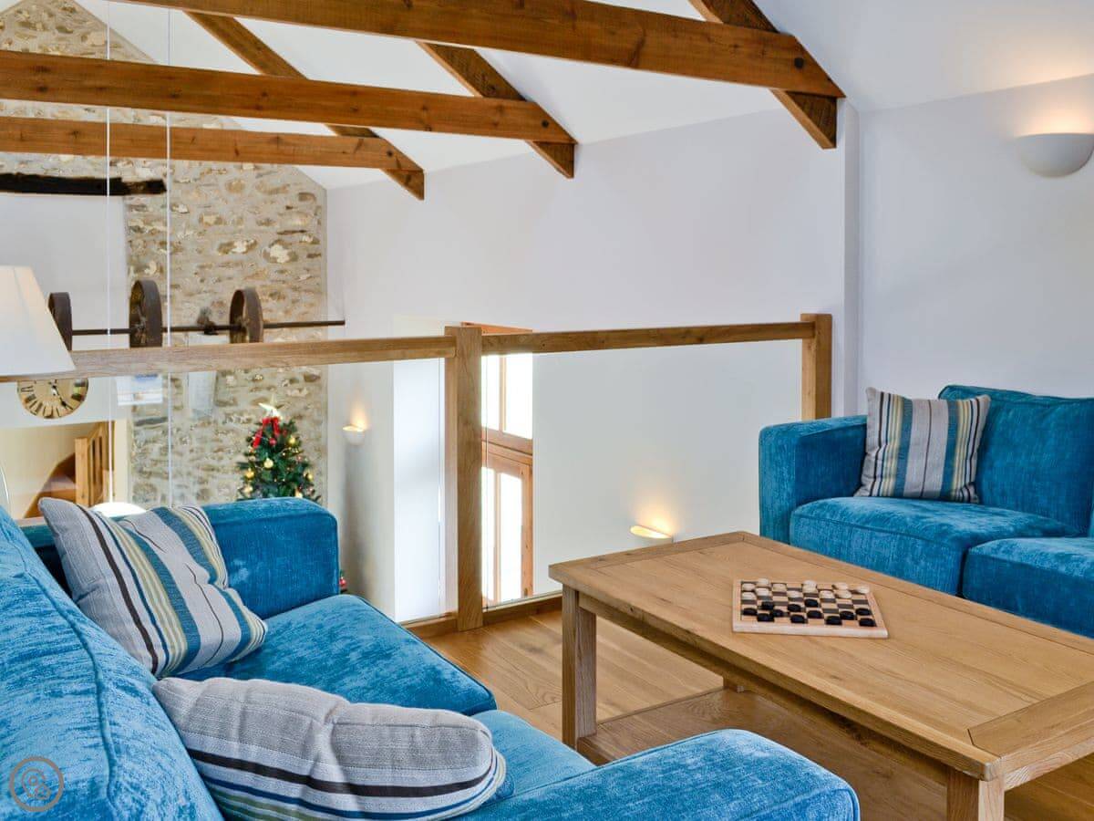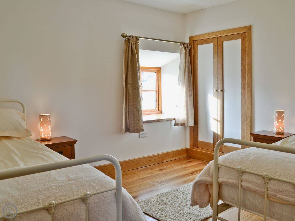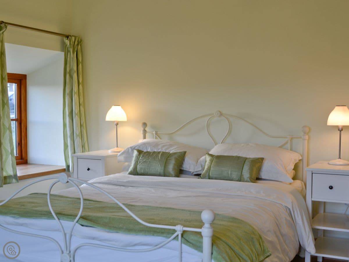It's a big building, so it sleeps eight comfortably. Four bedrooms, two bathrooms. It's got a 5 Star rating, which means it's well-equipped and maintained. There's underfloor heating from a ground source heat pump, so it's always warm underfoot.