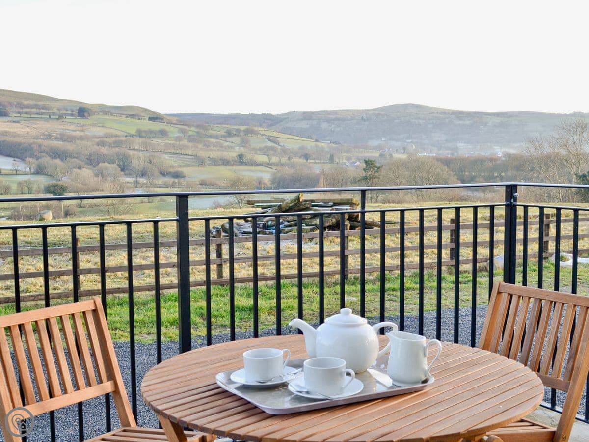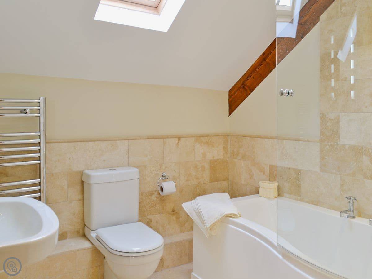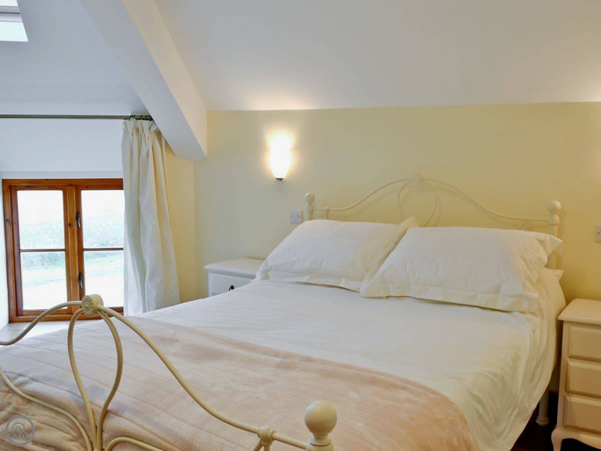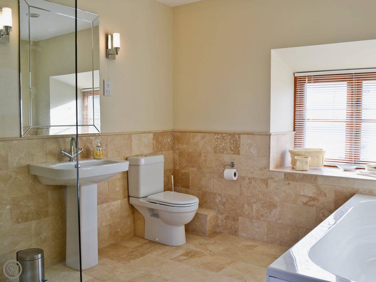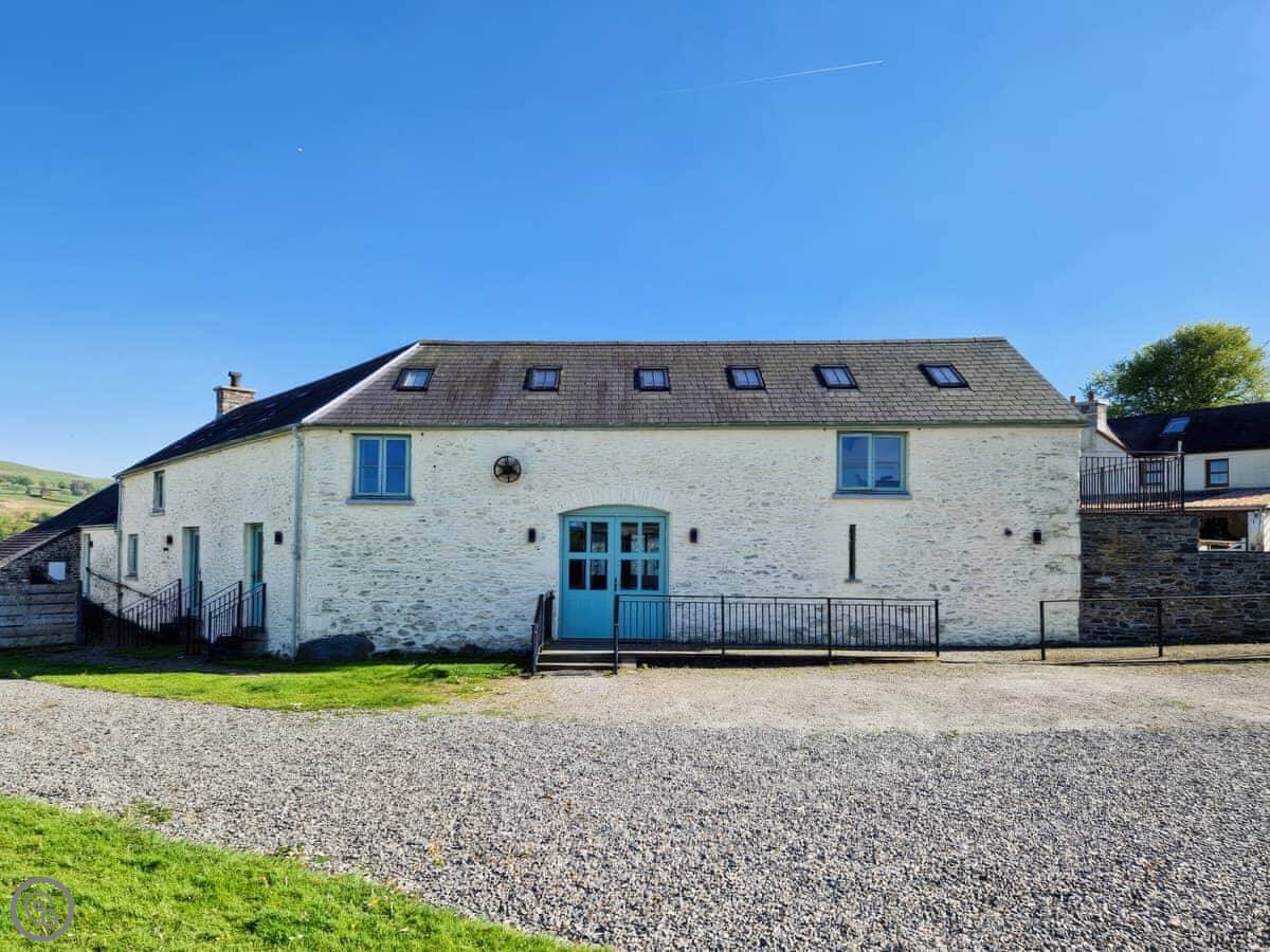 It's a big building, so it sleeps eight comfortably. Four bedrooms, two bathrooms. It's got a 5 Star rating, which means it's well-equipped and maintained. There's underfloor heating from a ground source heat pump, so it's always warm underfoot.