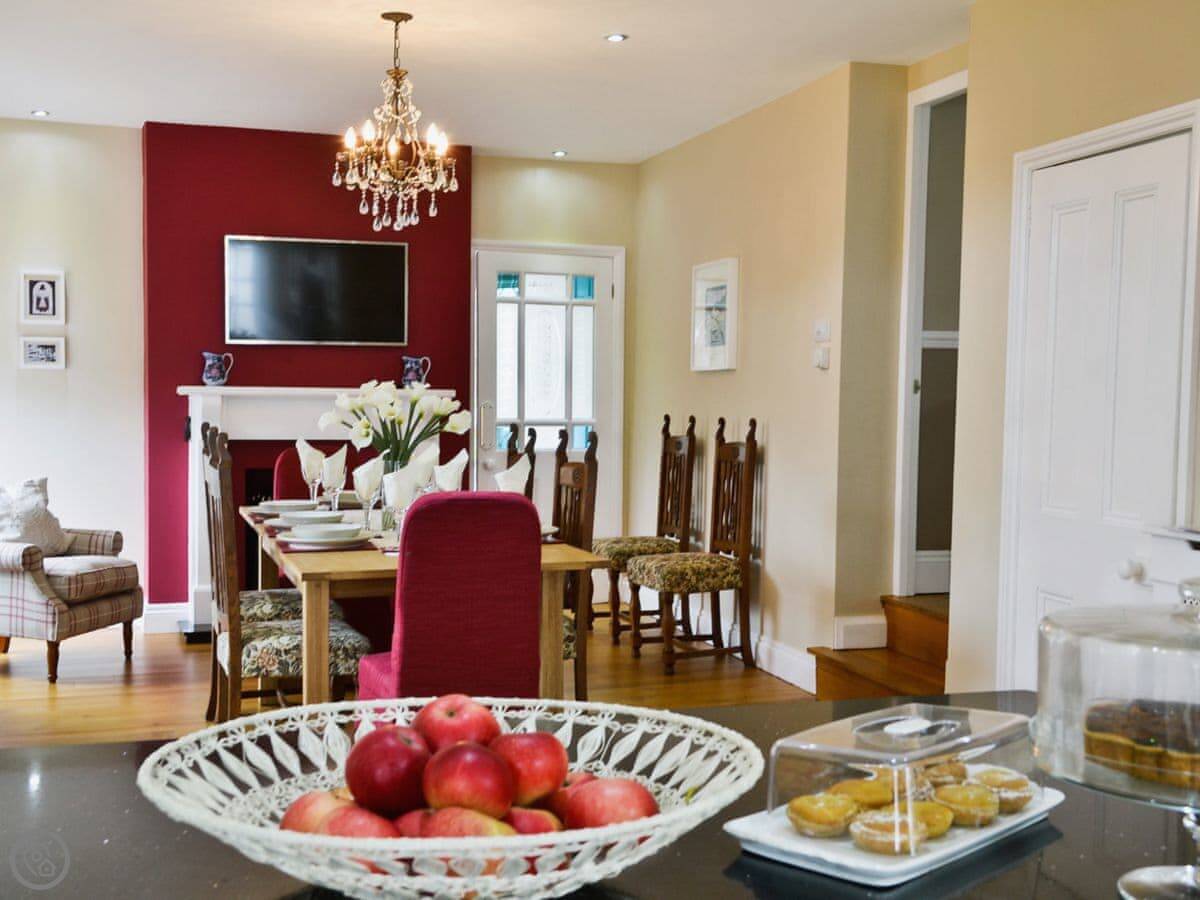 Facilities: there's parking for two cars on the drive. Bedding and towels are included. There's a washing machine and dishwasher. We can provide a cot and highchair. No pets.