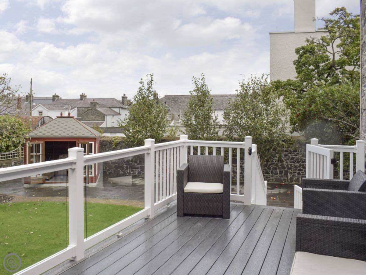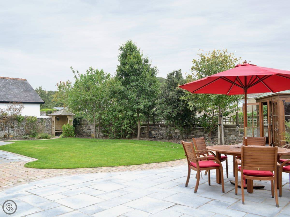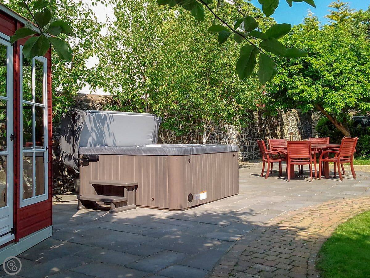 There's a good sized garden with a hot tub and a verandah with a BBQ. We get the sun in the afternoon.