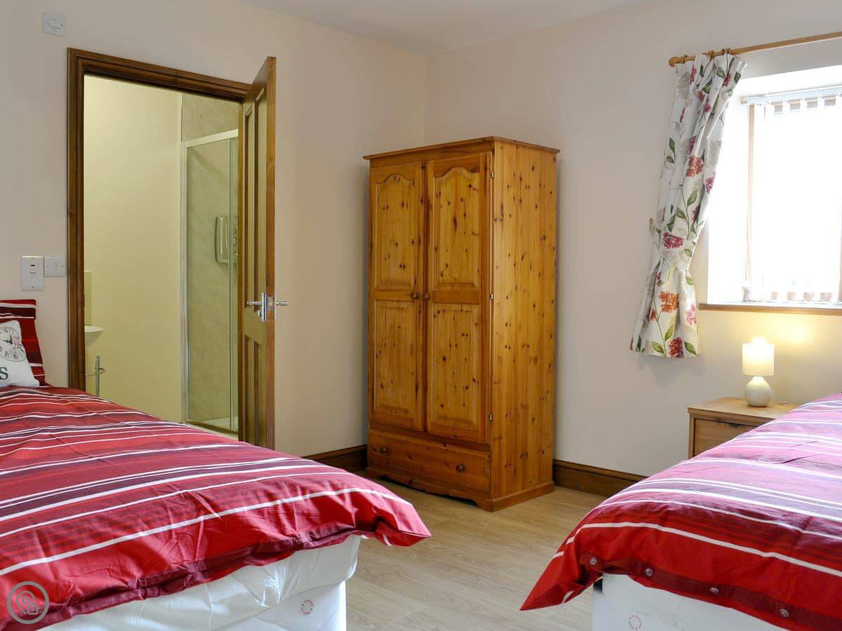 It sleeps four, in two bedrooms. Both bedrooms have their own bathroom, which is handy. It's got a 4 Star rating. It's comfortable and modern inside, but it's still a barn conversion, so the rooms are a good size.
