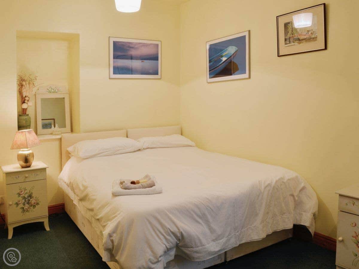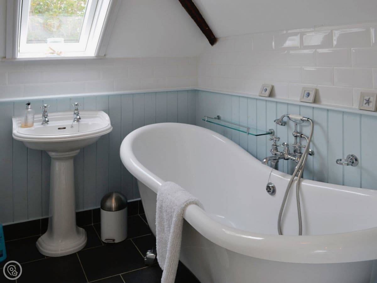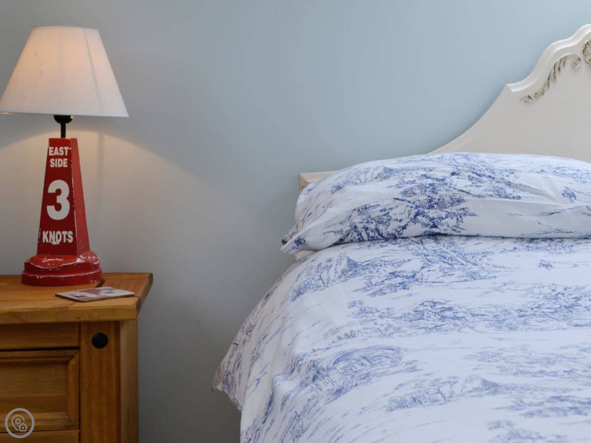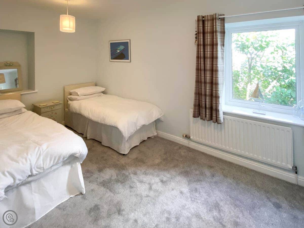 The garden is big and looks down towards the water. There's parking. Inside, it's got what you need: washing machine, dishwasher, WiFi, a wood burner. Towels and bedding are included. There's a cot and highchair if you need them.