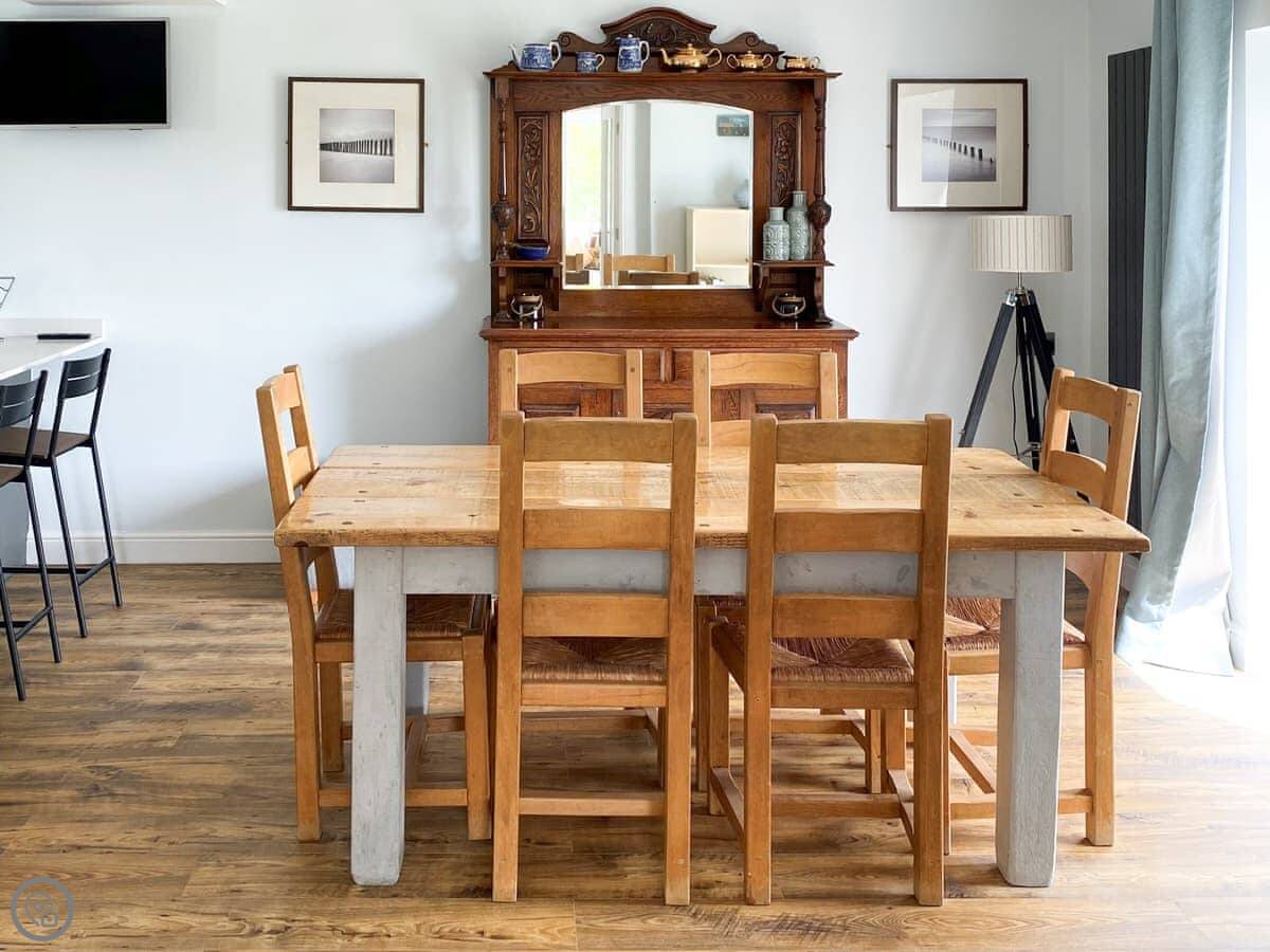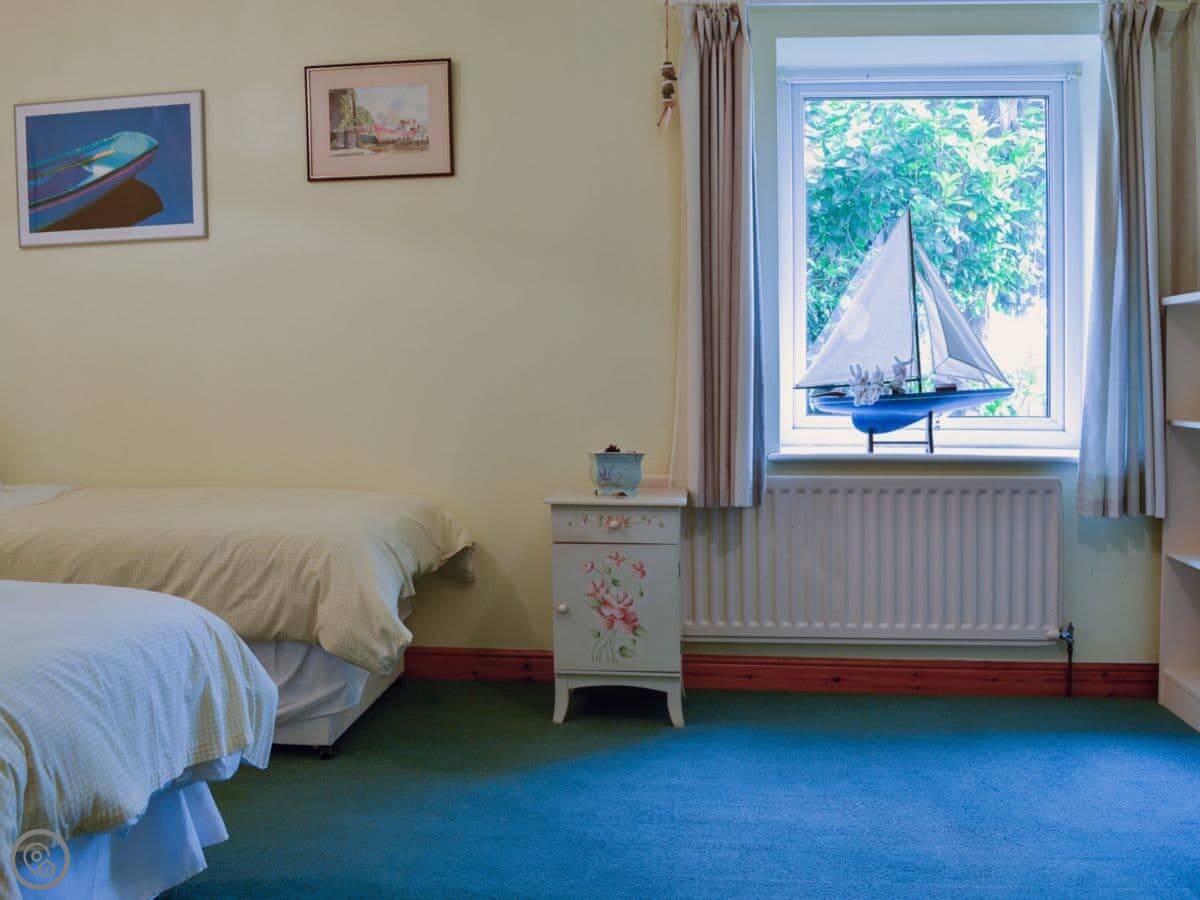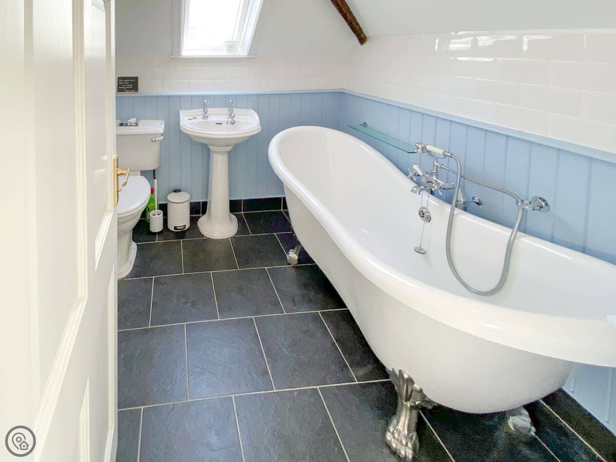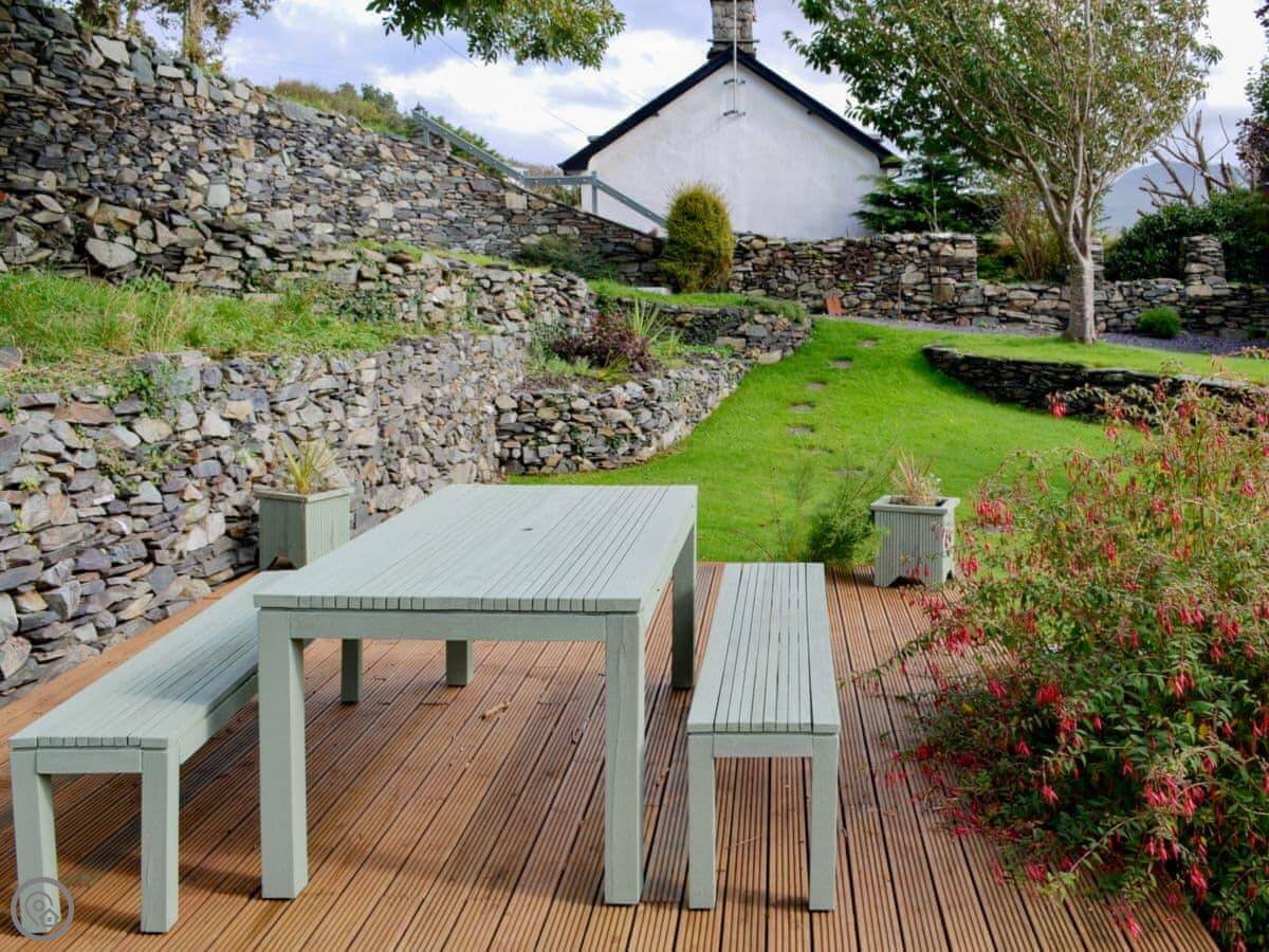 The garden is big and looks down towards the water. There's parking. Inside, it's got what you need: washing machine, dishwasher, WiFi, a wood burner. Towels and bedding are included. There's a cot and highchair if you need them.