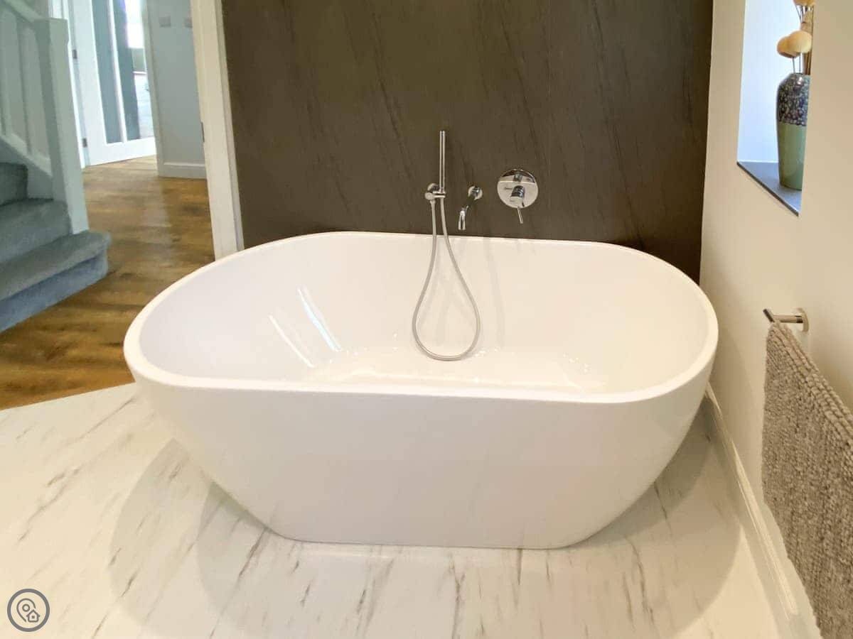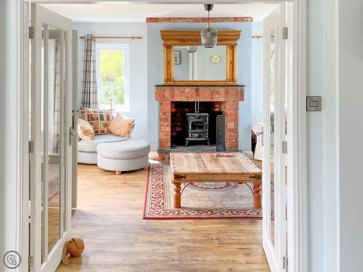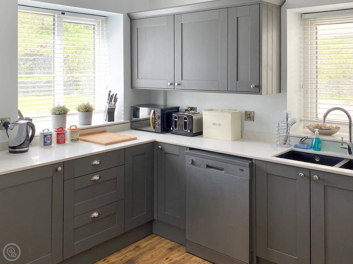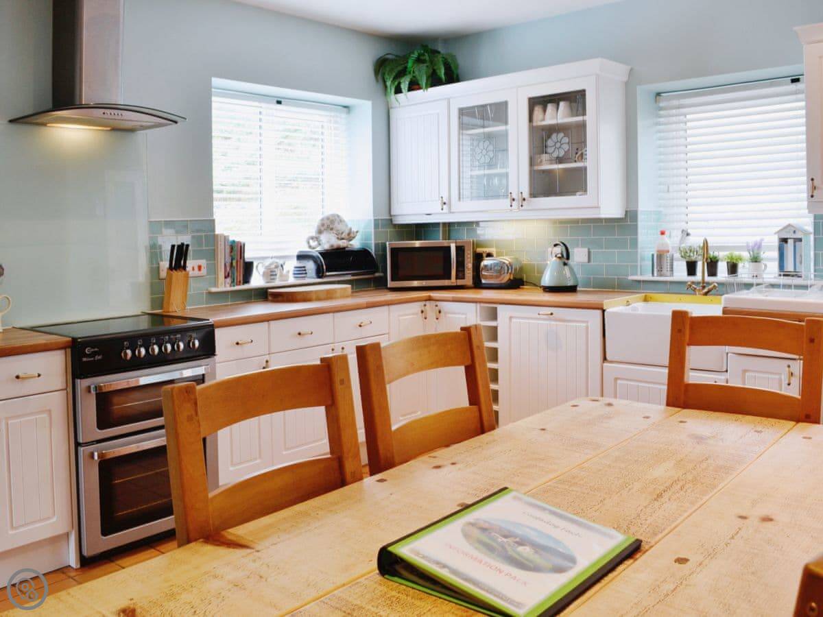 The garden is big and looks down towards the water. There's parking. Inside, it's got what you need: washing machine, dishwasher, WiFi, a wood burner. Towels and bedding are included. There's a cot and highchair if you need them.