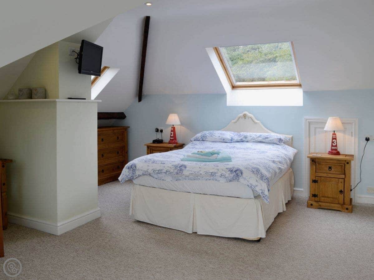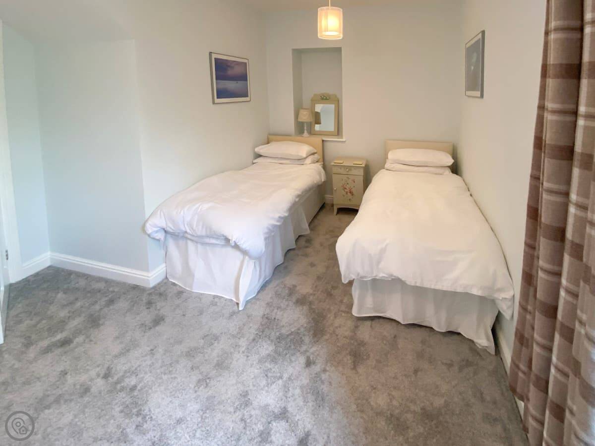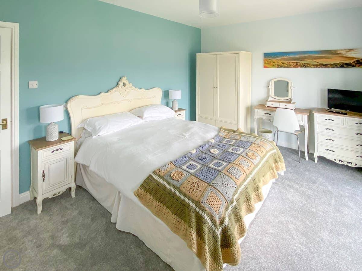 It sleeps six in three bedrooms. There are two bathrooms, which helps. One bedroom is upstairs with its own ensuite and a balcony. That's the one with the best view.