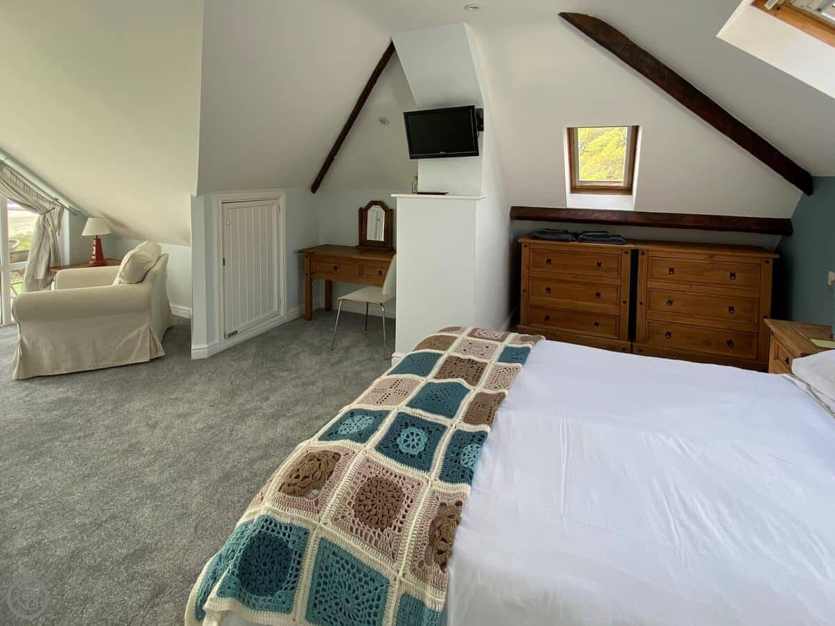 Cae-Fadog Fach is on the headland above Barmouth. It's detached, so no neighbours attached. The main thing is the view. You look out over the Mawddach estuary, the mountains, and the sea.