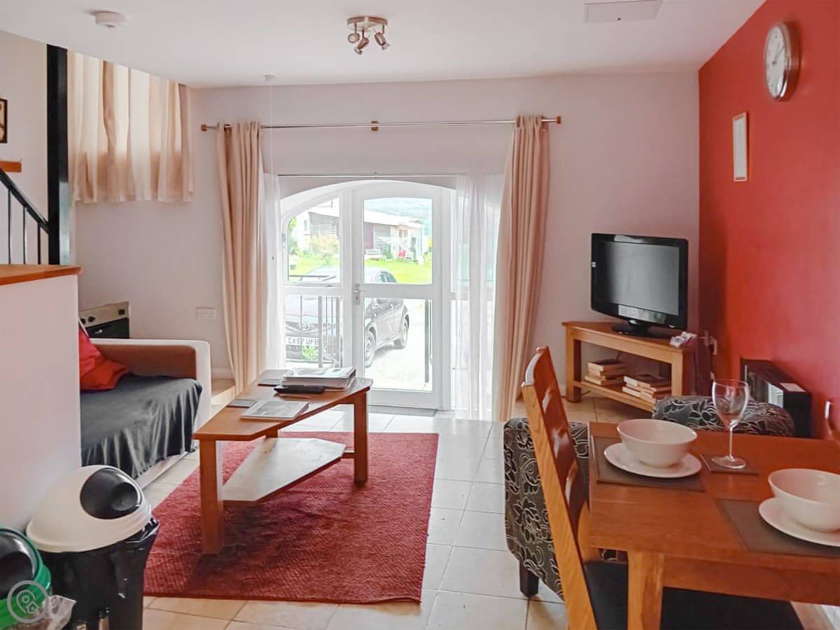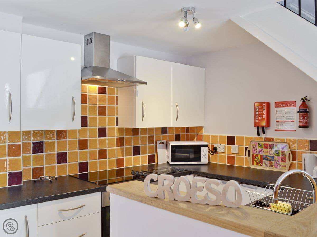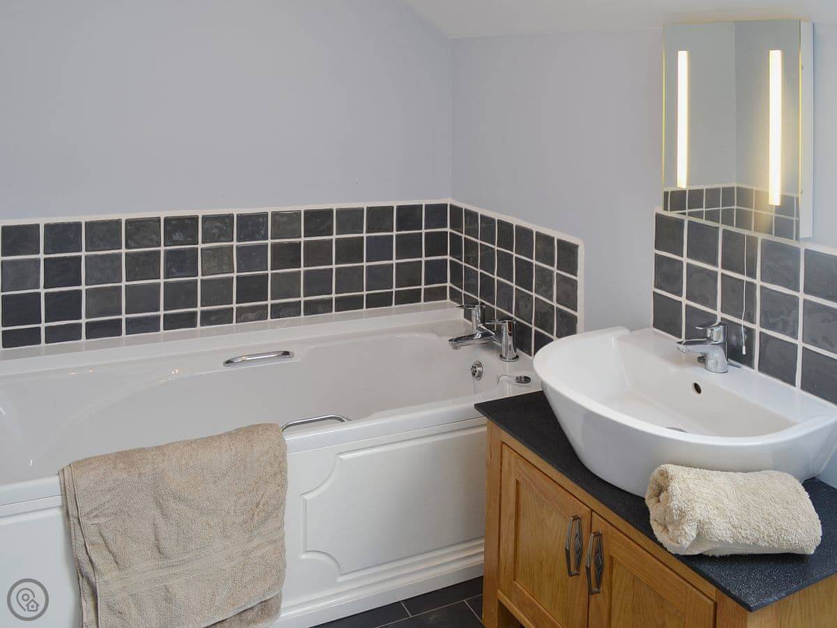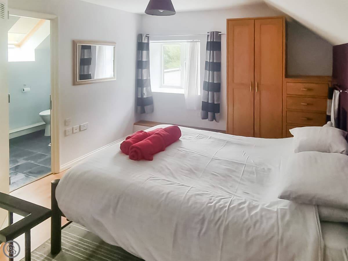 The place is all open plan downstairs. Upstairs is the bedroom and the en-suite shower room. The stairs are a bit steep, like most barn conversions. There's a washing machine and towels are included.