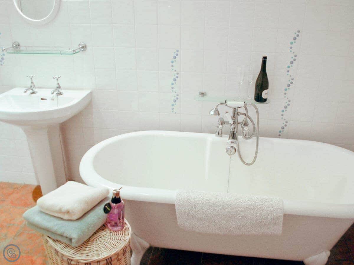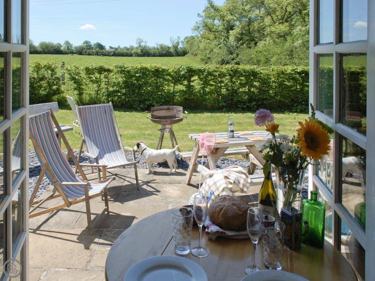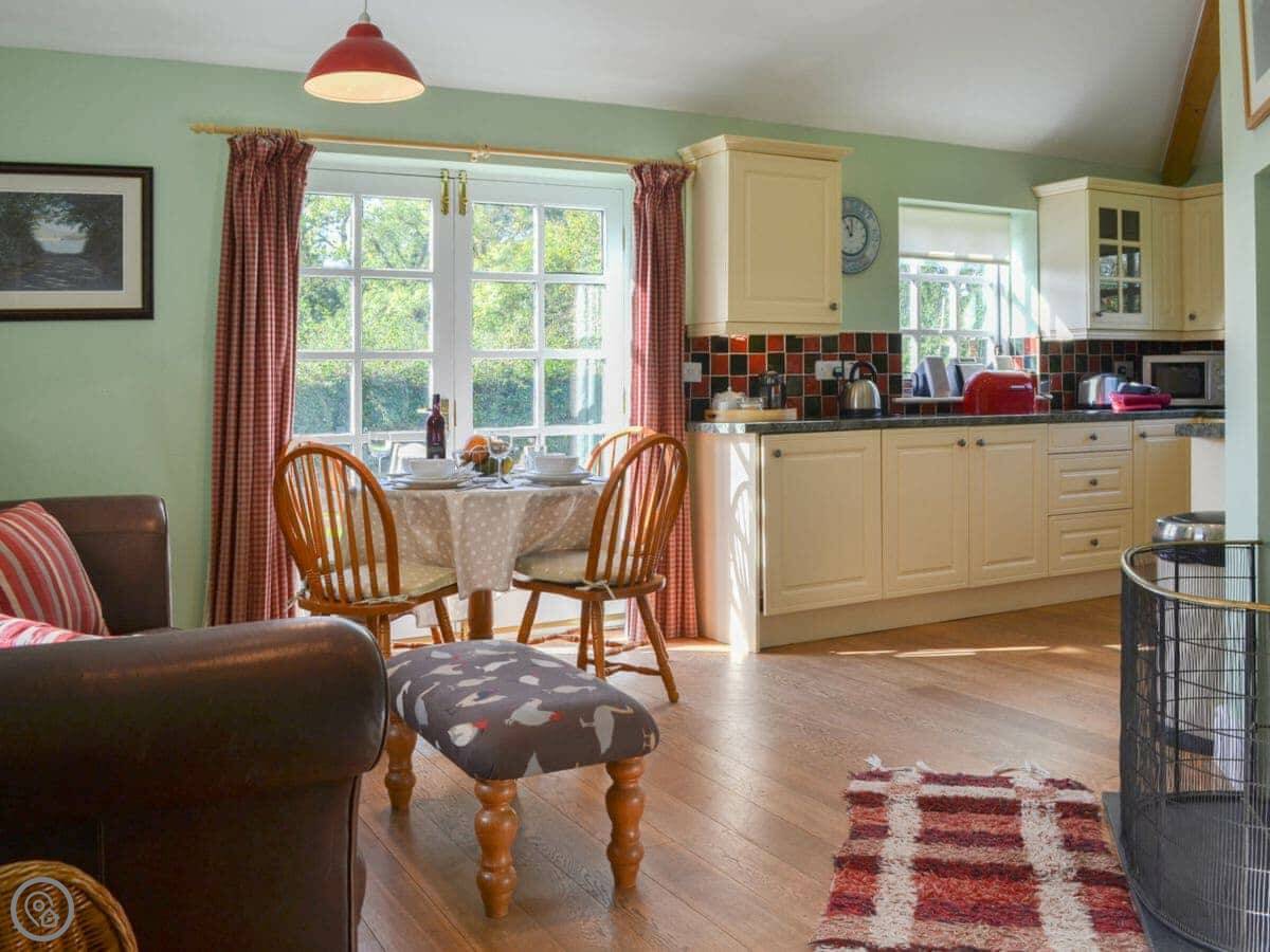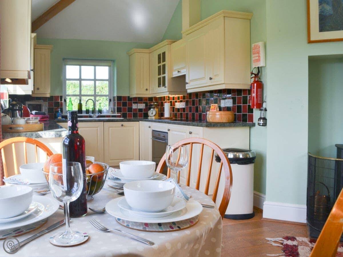 Inside, it’s got the things you’d expect: WiFi, a TV, washing machine, dishwasher. Bedding and towels are included. You can bring one dog. There’s a cot and a highchair if you need them.