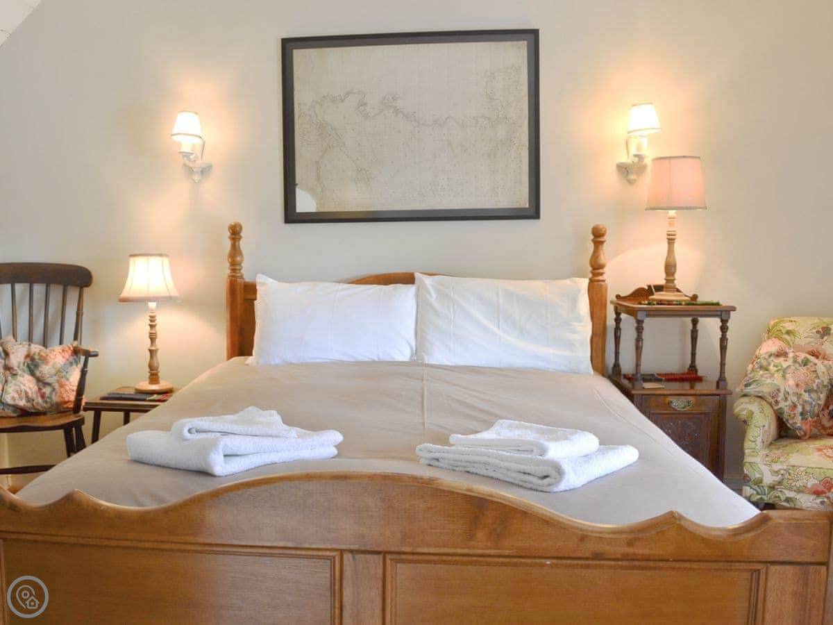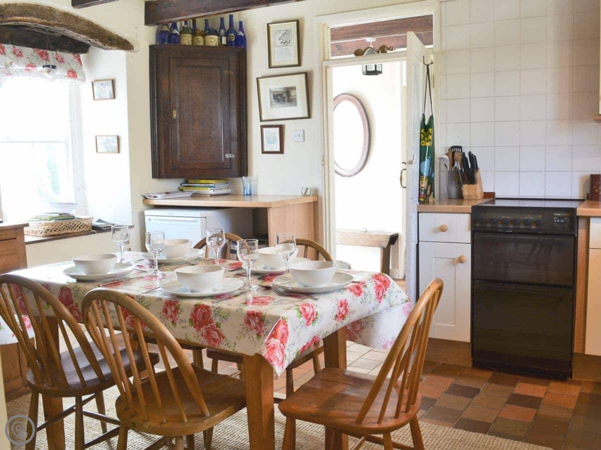 The cottage is old, from the 18th century. It used to belong to a ship captain. The stone walls and beams are original. There's a wood-burning stove for cooler evenings.