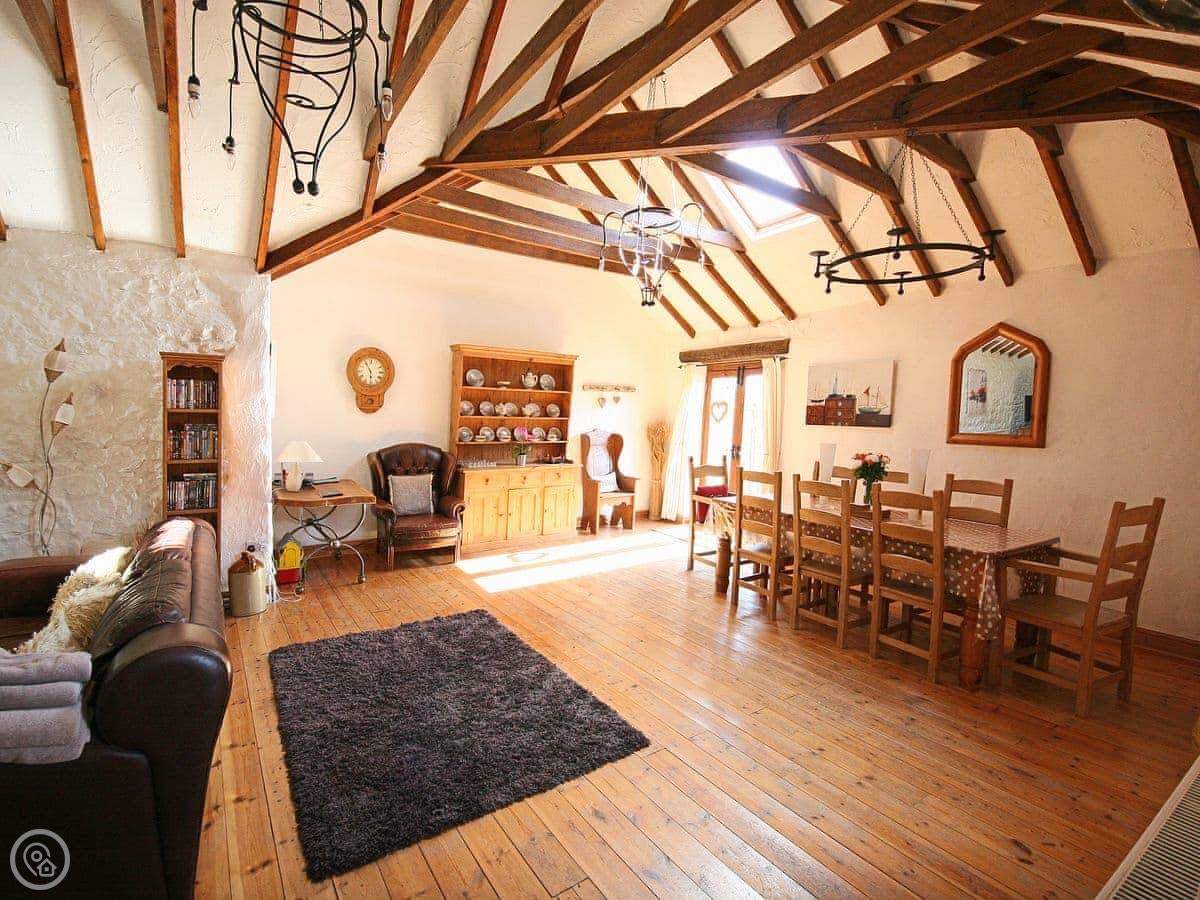Set in 18 acres of beautiful rural countryside in the heart of Gower, this delightfully converted barn provides great family holiday accommodation. Adjoining the owners’ home, it is set in a relaxed and peaceful location. Full advantage is taken of the views from the decking area, which overlooks a fenced play area, fields, woodlands and a large wild flower meadow - as well as a pond with geese and ducks. This leads further on to a wooden summerhouse with a large deck overlooking a lake. This is truly a nature lover’s paradise, for young and old alike.