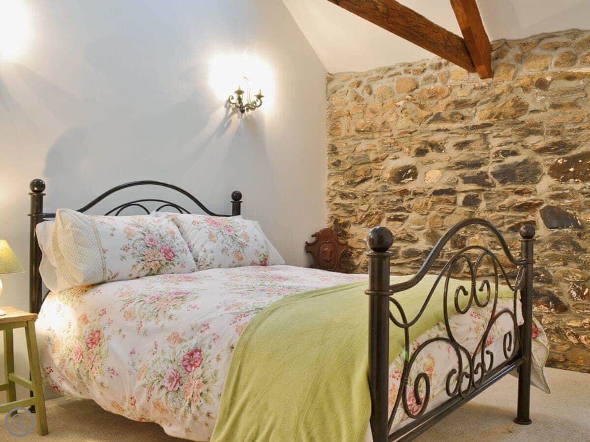 The rating is 4 Star. That means it's comfortable and well-finished, but it's not a hotel. It's a converted barn. The walls are stone, the floors are oak and limestone, and the ceilings are beamed and vaulted. The stairs up to the mezzanine are a proper farmhouse ladder staircase, so they're steep and narrow. It's part of the place.