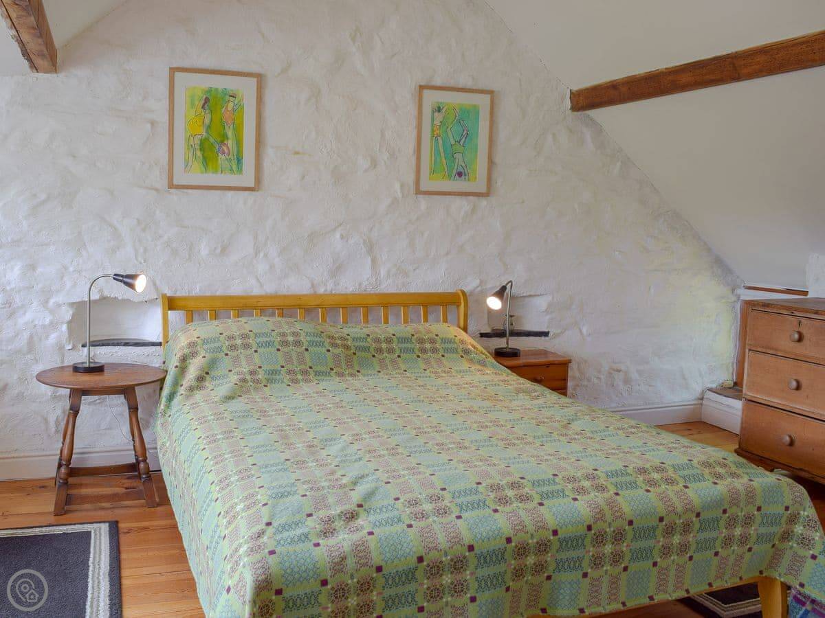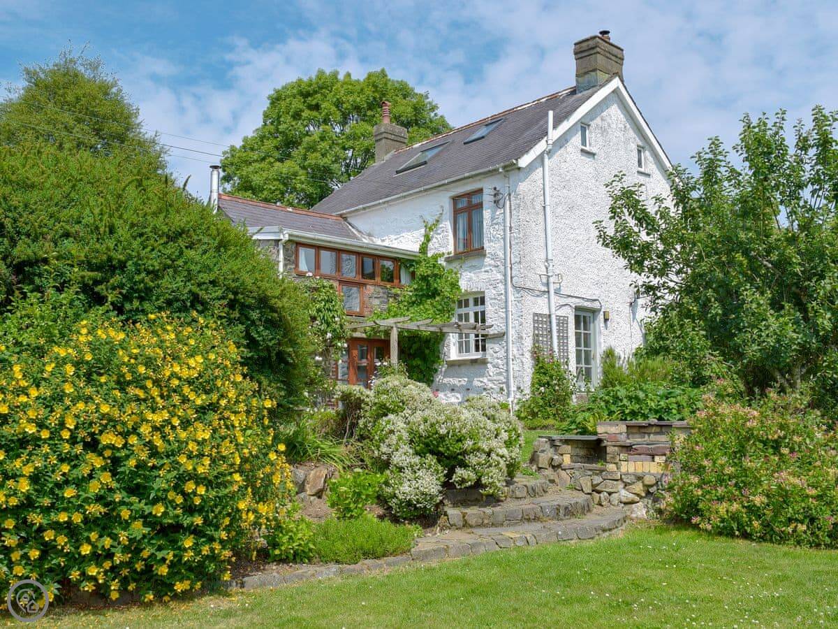 Lordship Farmhouse is near Wolf's Castle. It's a proper old place, built around the 1800s. It sleeps ten, has four bedrooms and two bathrooms. There's stone walls and beams, like you'd expect.