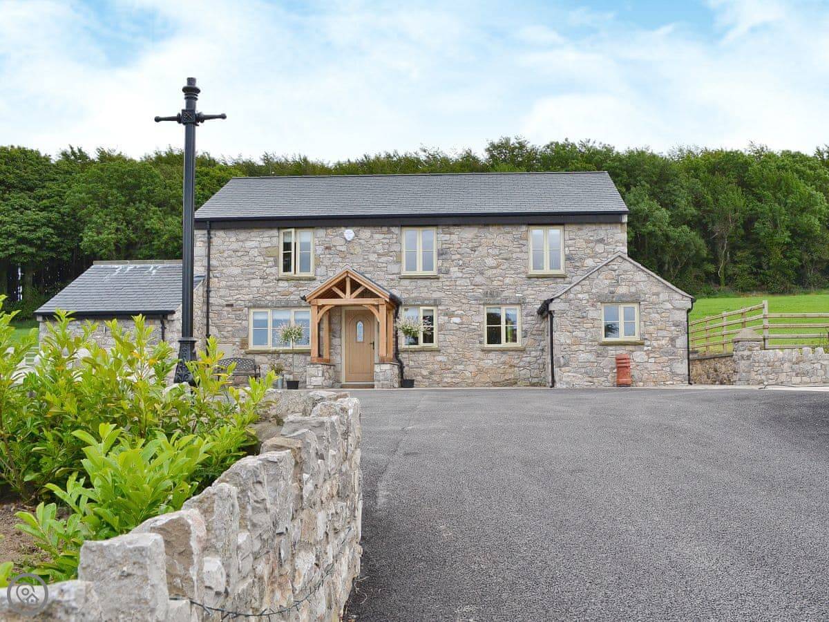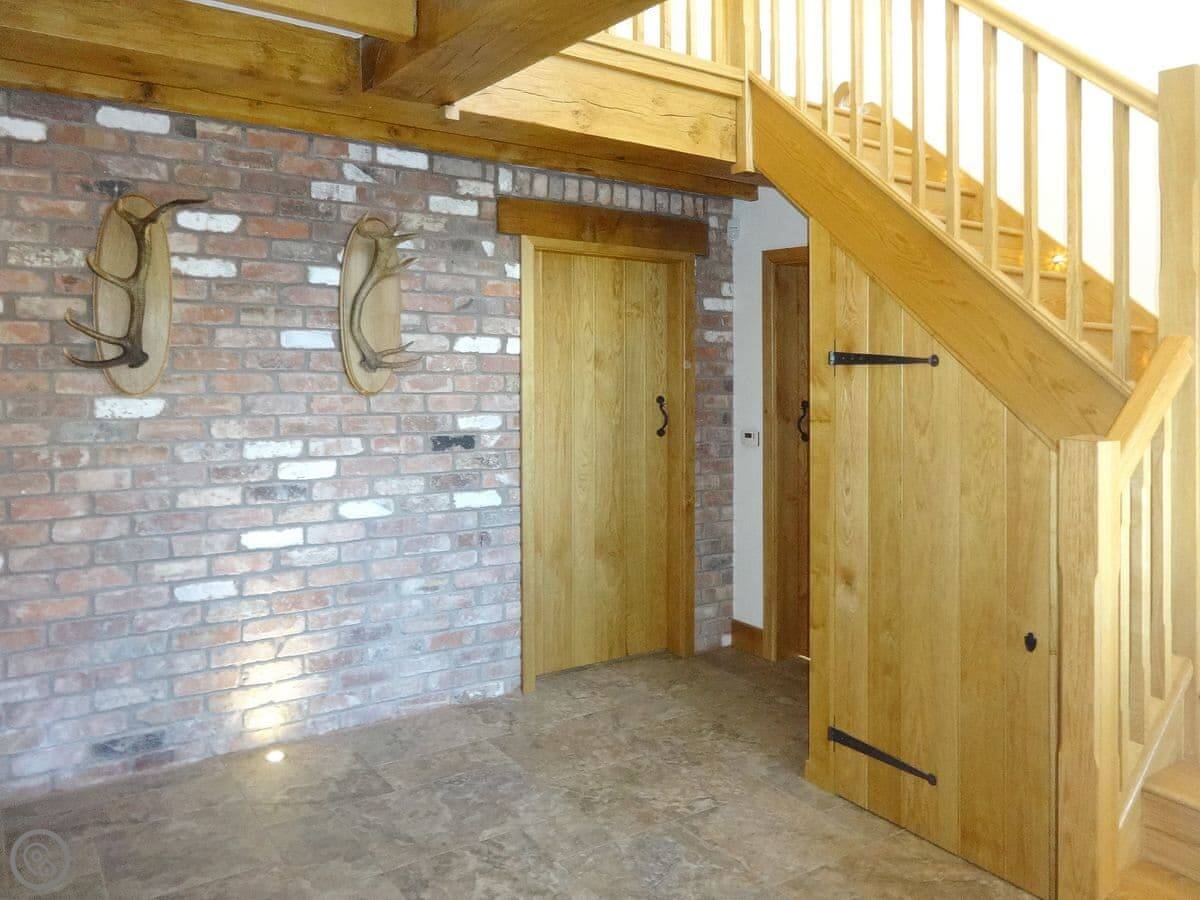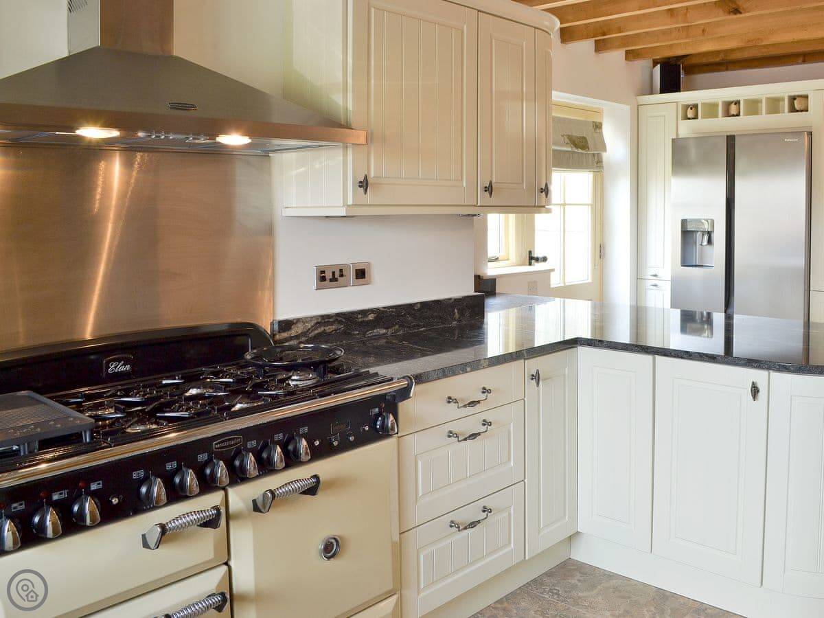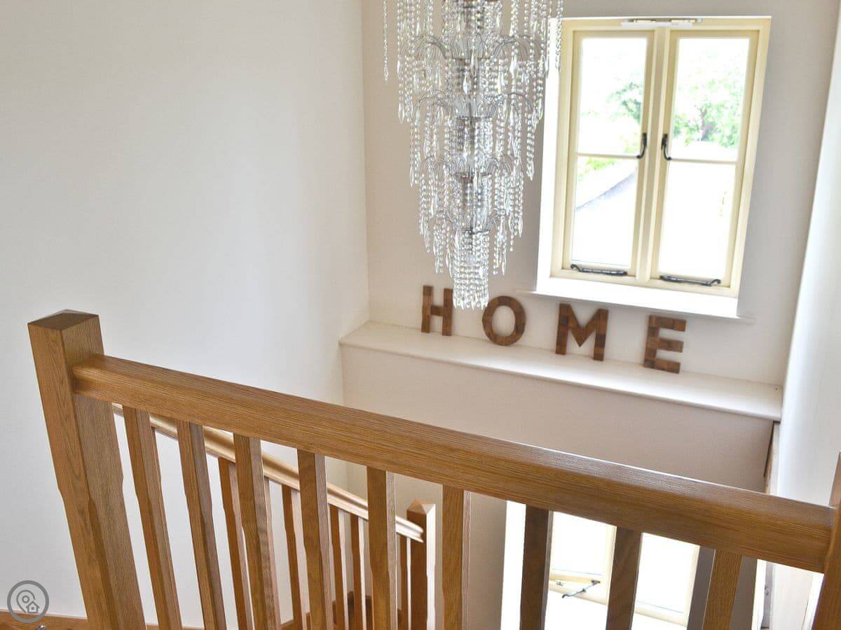 It's a modern build done up to look traditional. There are beams and a wood burner. The kitchen is new. There's a music system that plays through the house and outside, and a hot tub in the garden. All the bedrooms have smart TVs.