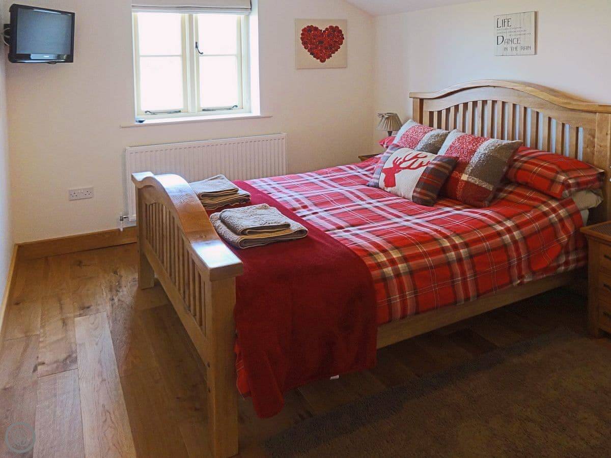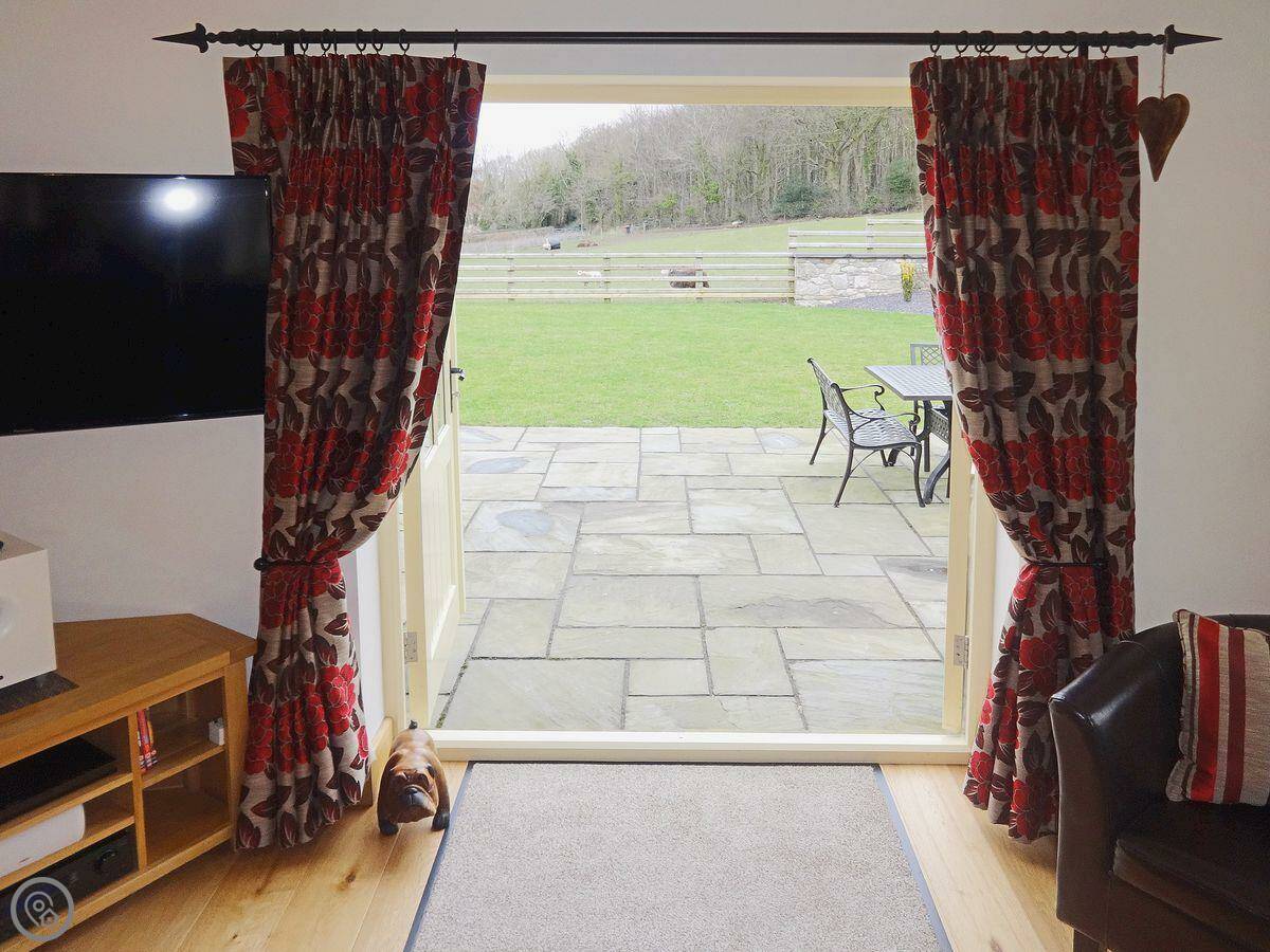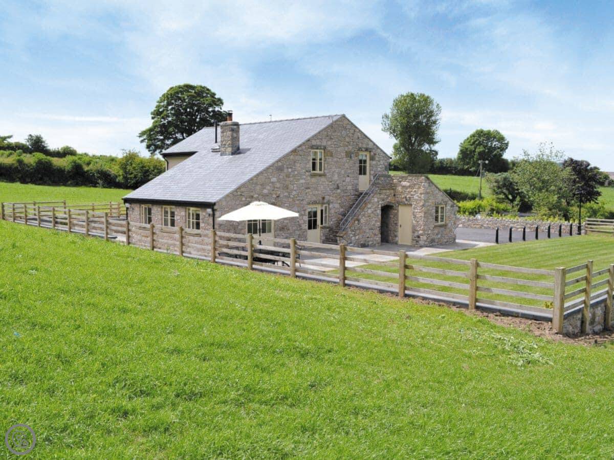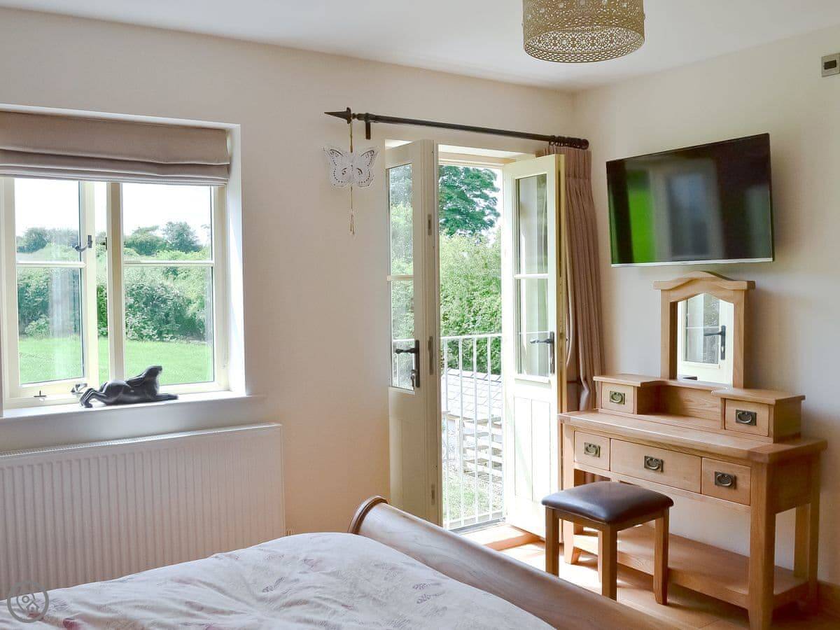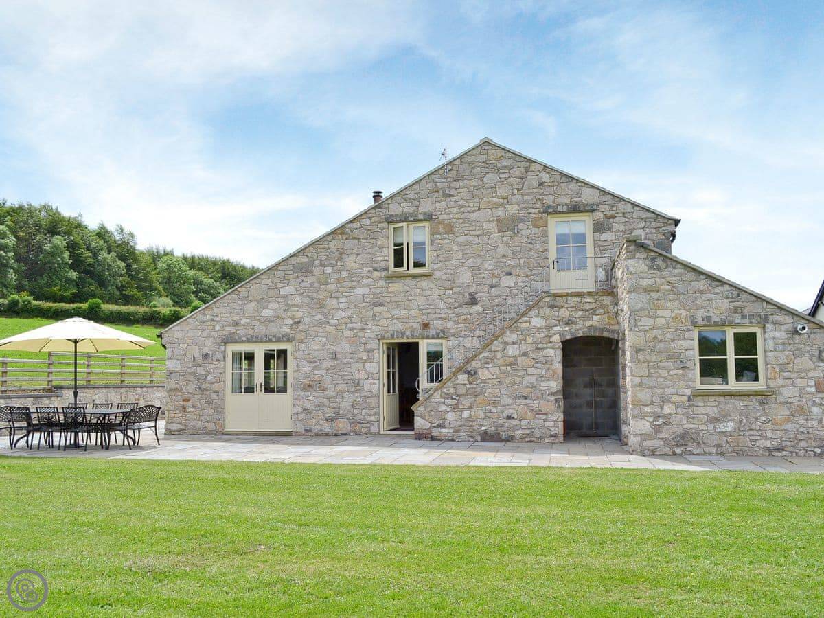 It's a modern build done up to look traditional. There are beams and a wood burner. The kitchen is new. There's a music system that plays through the house and outside, and a hot tub in the garden. All the bedrooms have smart TVs.