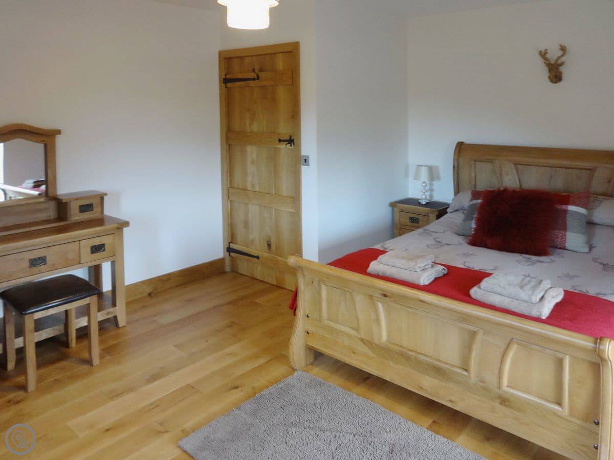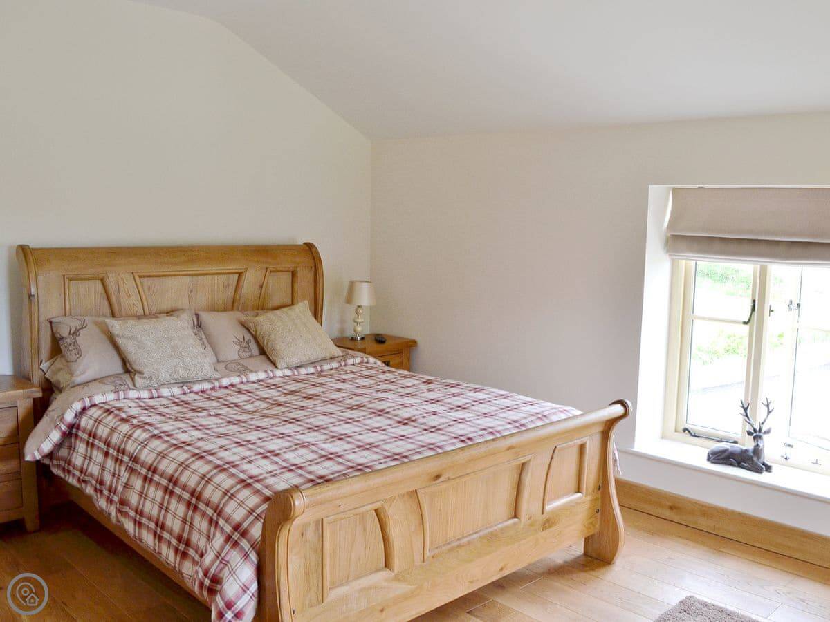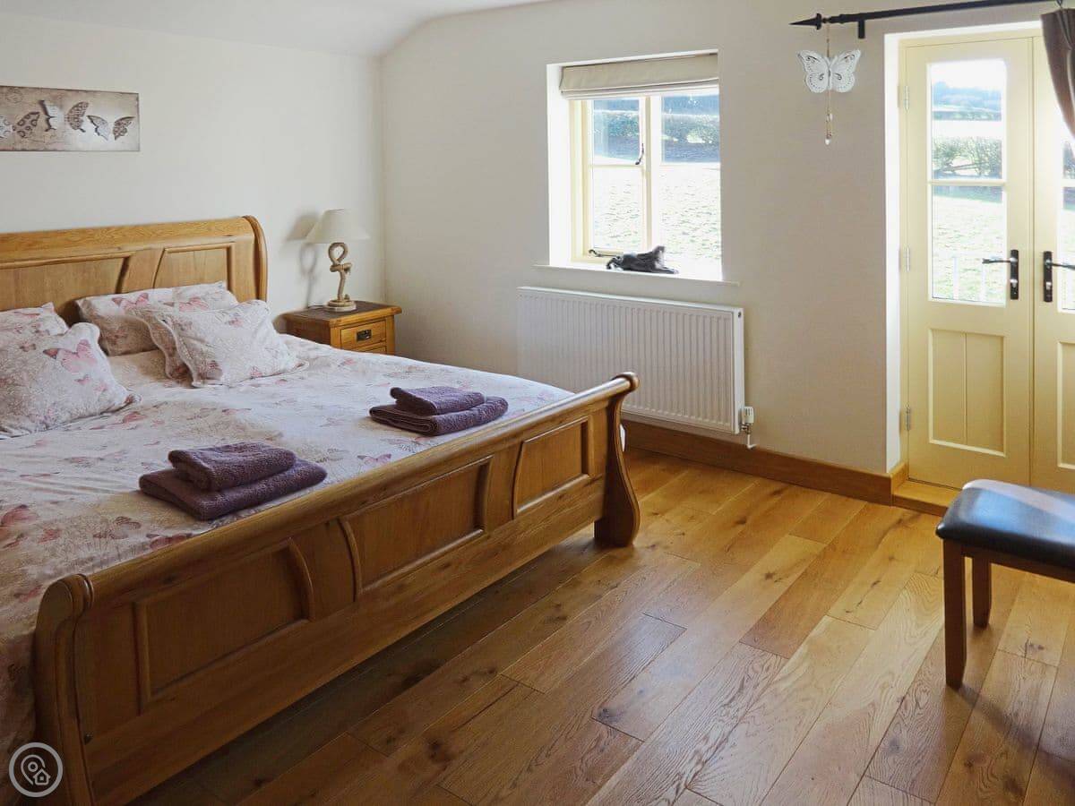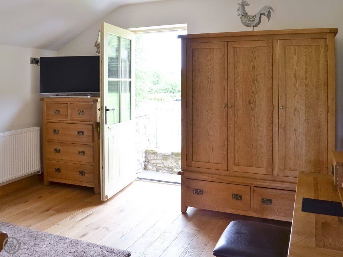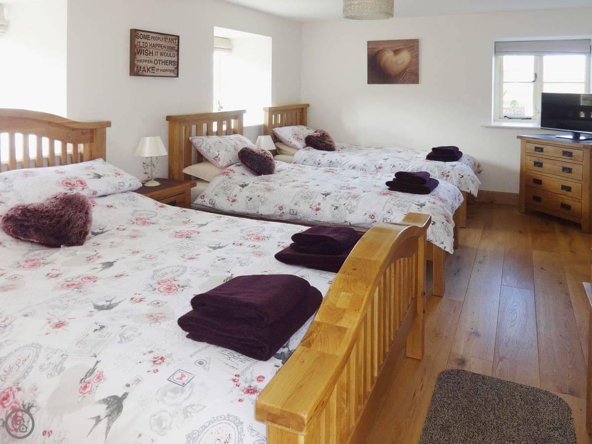 It's a modern build done up to look traditional. There are beams and a wood burner. The kitchen is new. There's a music system that plays through the house and outside, and a hot tub in the garden. All the bedrooms have smart TVs.