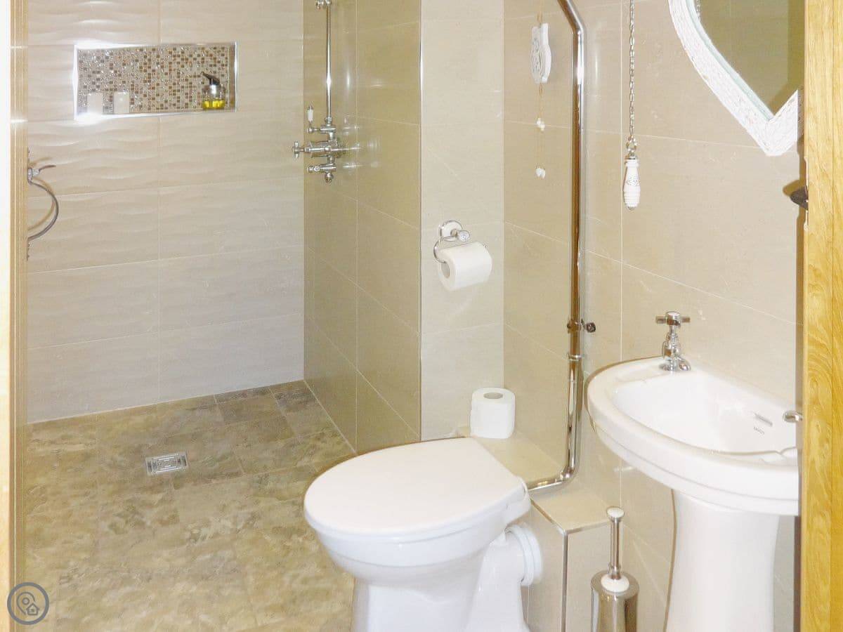 The ground floor is accessible for a wheelchair. There's a wet room down there too. Parking is on site.