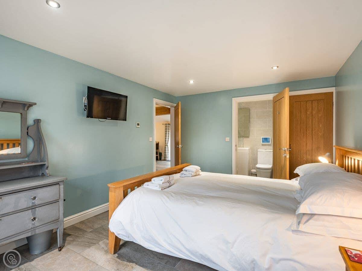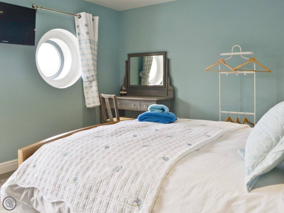 The nearest beach is Porth Dafarch, about a mile away. It's sandy and good for swimming. Trearddur Bay is a bit further. They've got a few pubs, shops, and places to eat there.