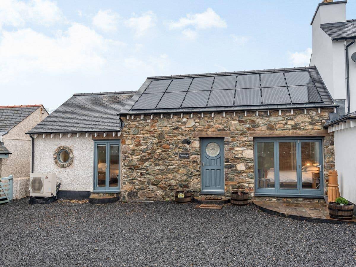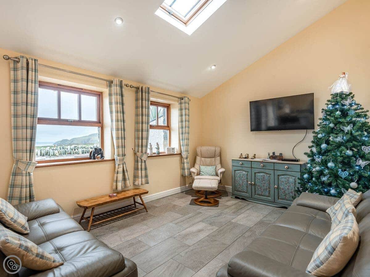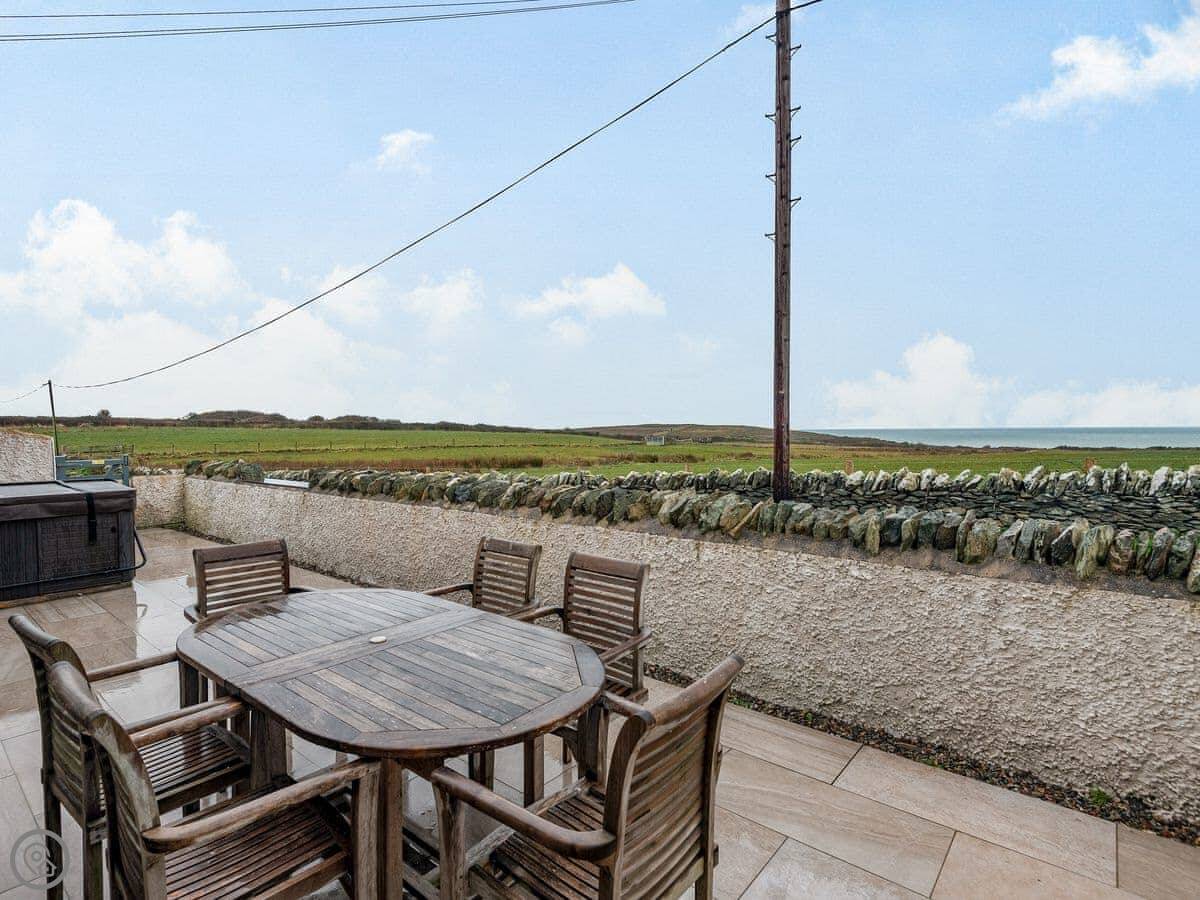 Seascape is near Penrhosfeilw on Anglesey. It's next to our house but you have your own space. The views are good. You can see South Stack Lighthouse one way and the Snowdonia mountains the other.