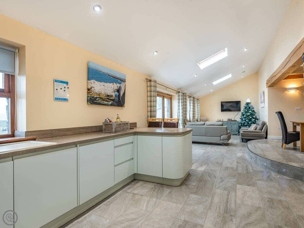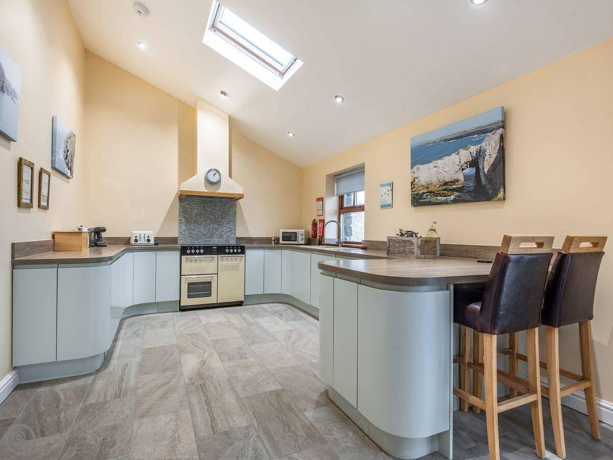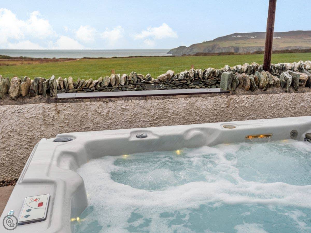 Seascape is near Penrhosfeilw on Anglesey. It's next to our house but you have your own space. The views are good. You can see South Stack Lighthouse one way and the Snowdonia mountains the other.