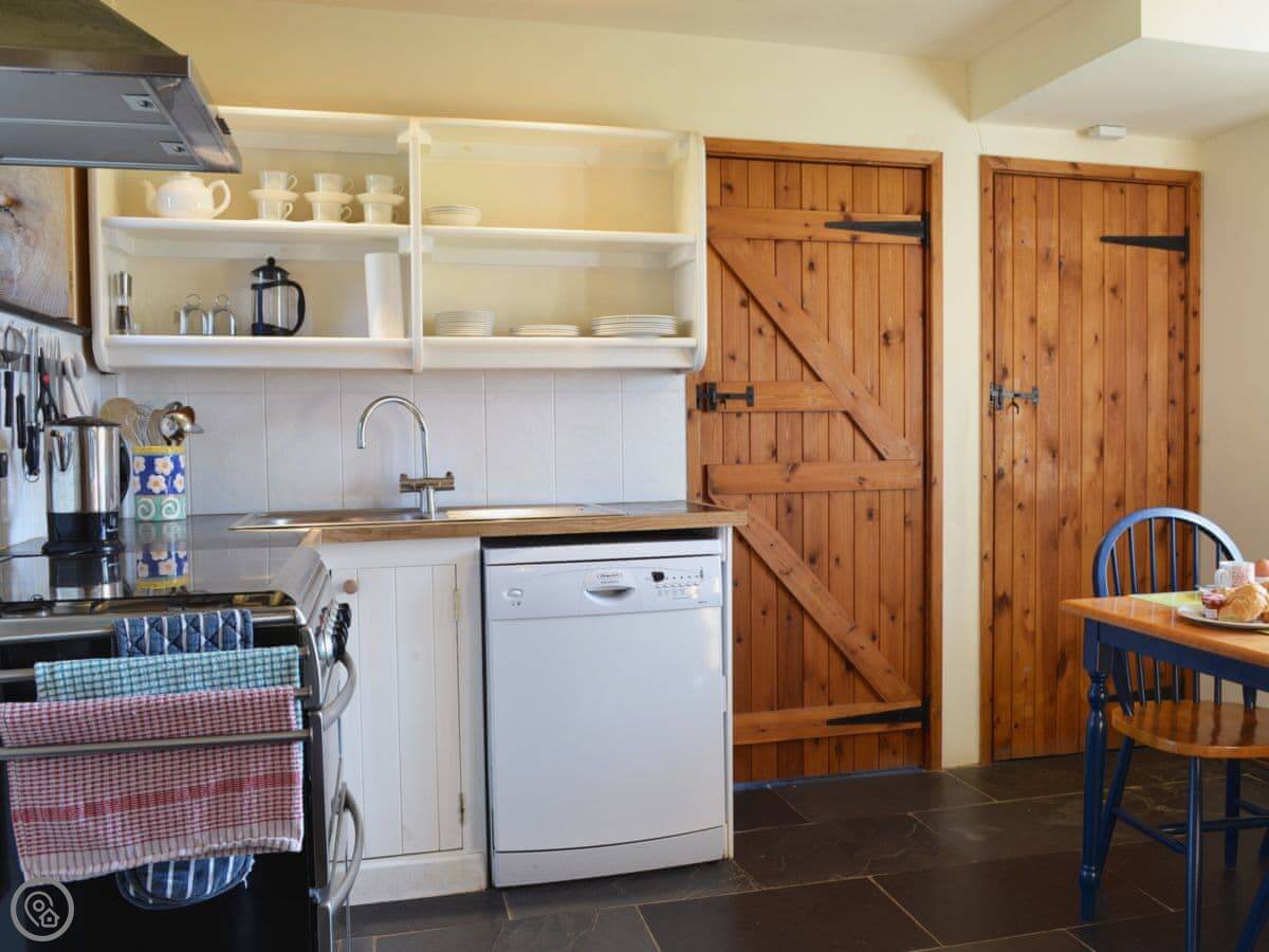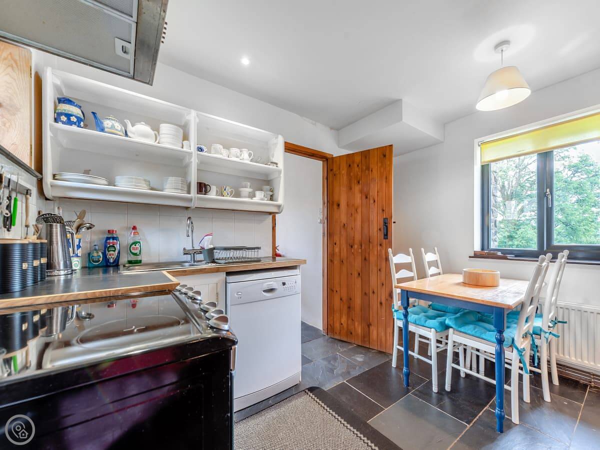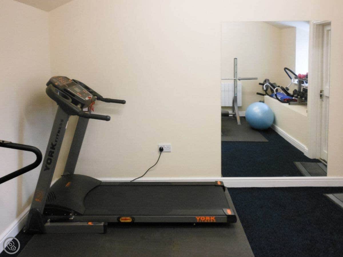 Facilities: It's got a wood burner, a dishwasher, washing machine, wifi, and parking right outside. There's a cot and highchair. You can bring one dog. The listing says there are gym facilities, that's a shared shed with some basic equipment in it down by the other cottages.