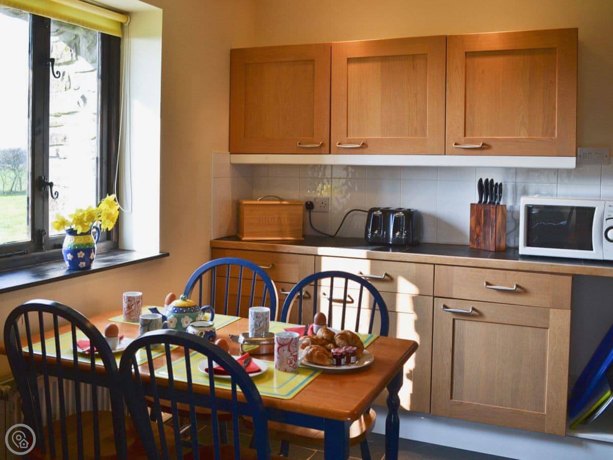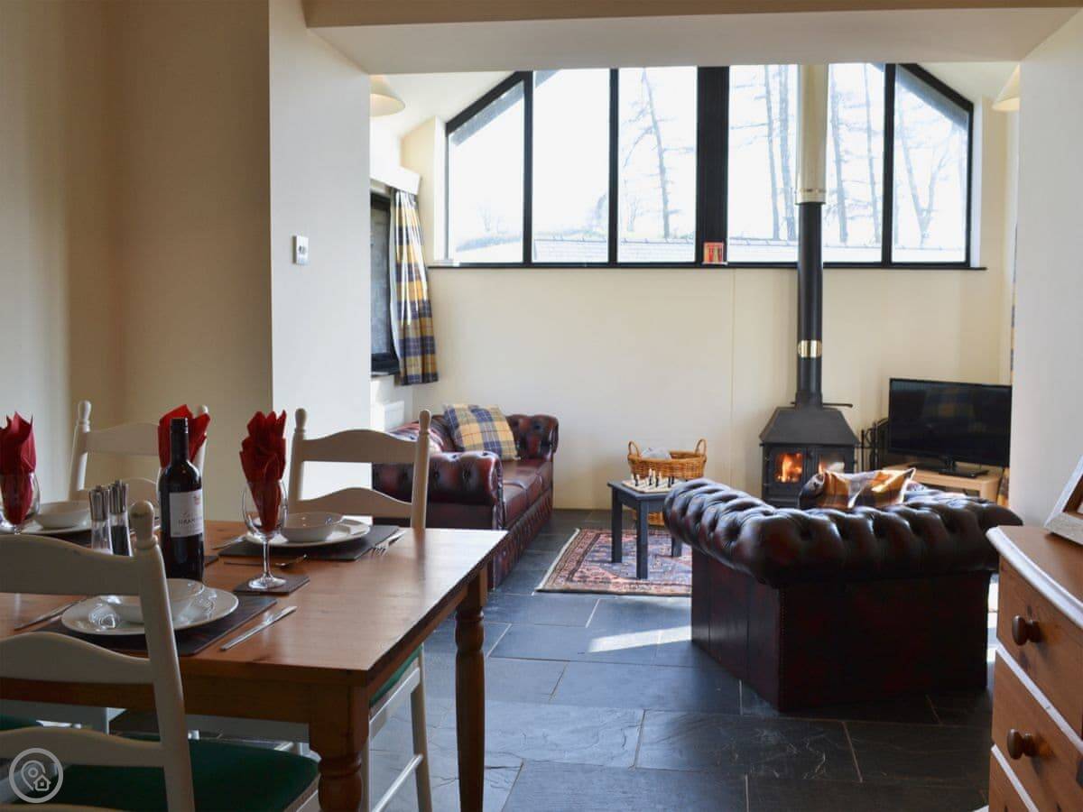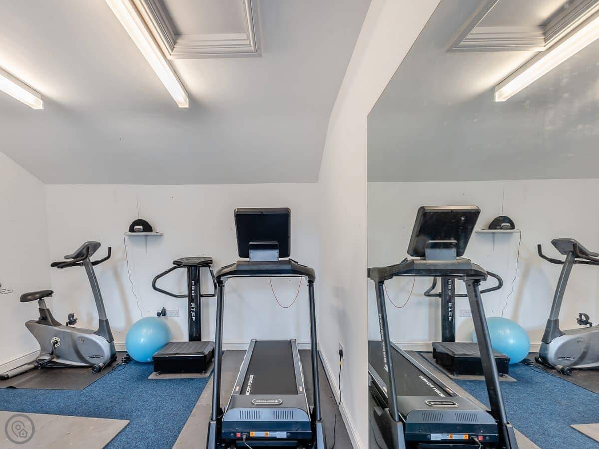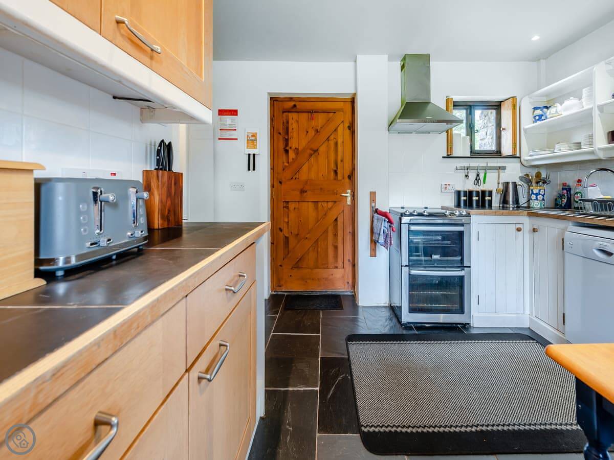 Facilities: It's got a wood burner, a dishwasher, washing machine, wifi, and parking right outside. There's a cot and highchair. You can bring one dog. The listing says there are gym facilities, that's a shared shed with some basic equipment in it down by the other cottages.