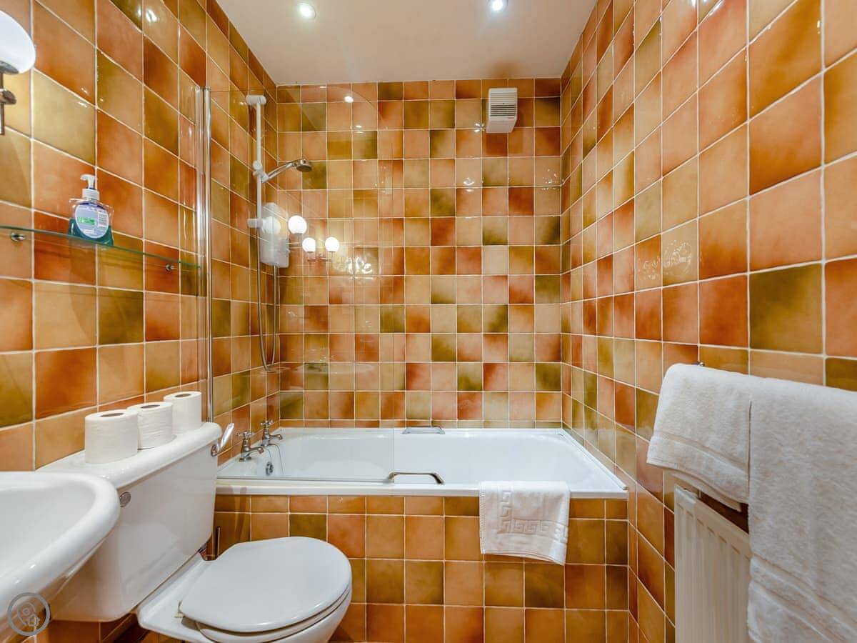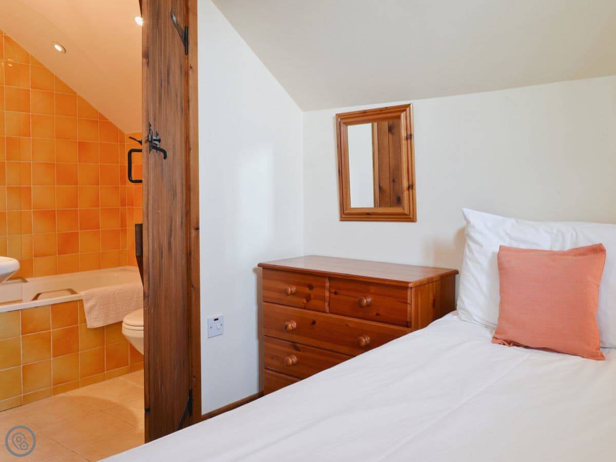 It sleeps five. Three bedrooms, and each one has its own bathroom. That's useful if you're with friends. It's got a 4 Star rating. It's comfortable and well equipped.