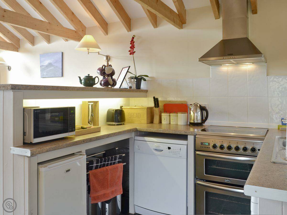 Facilities: it's got a washing machine, dishwasher, TV, and WiFi. Bedding and towels are included. There's parking right outside. You can bring one dog. There's a cot and highchair if needed.