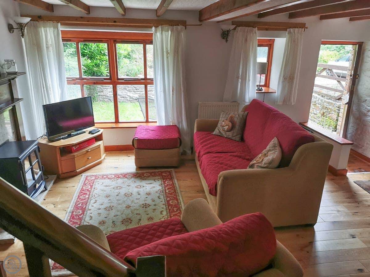 This is Ystabl. It's one of two cottages next to our farmhouse on Mwdlwscwm Farm, in Llannon. The countryside is quiet out here, typical for Carmarthenshire. You can see fields from the windows.