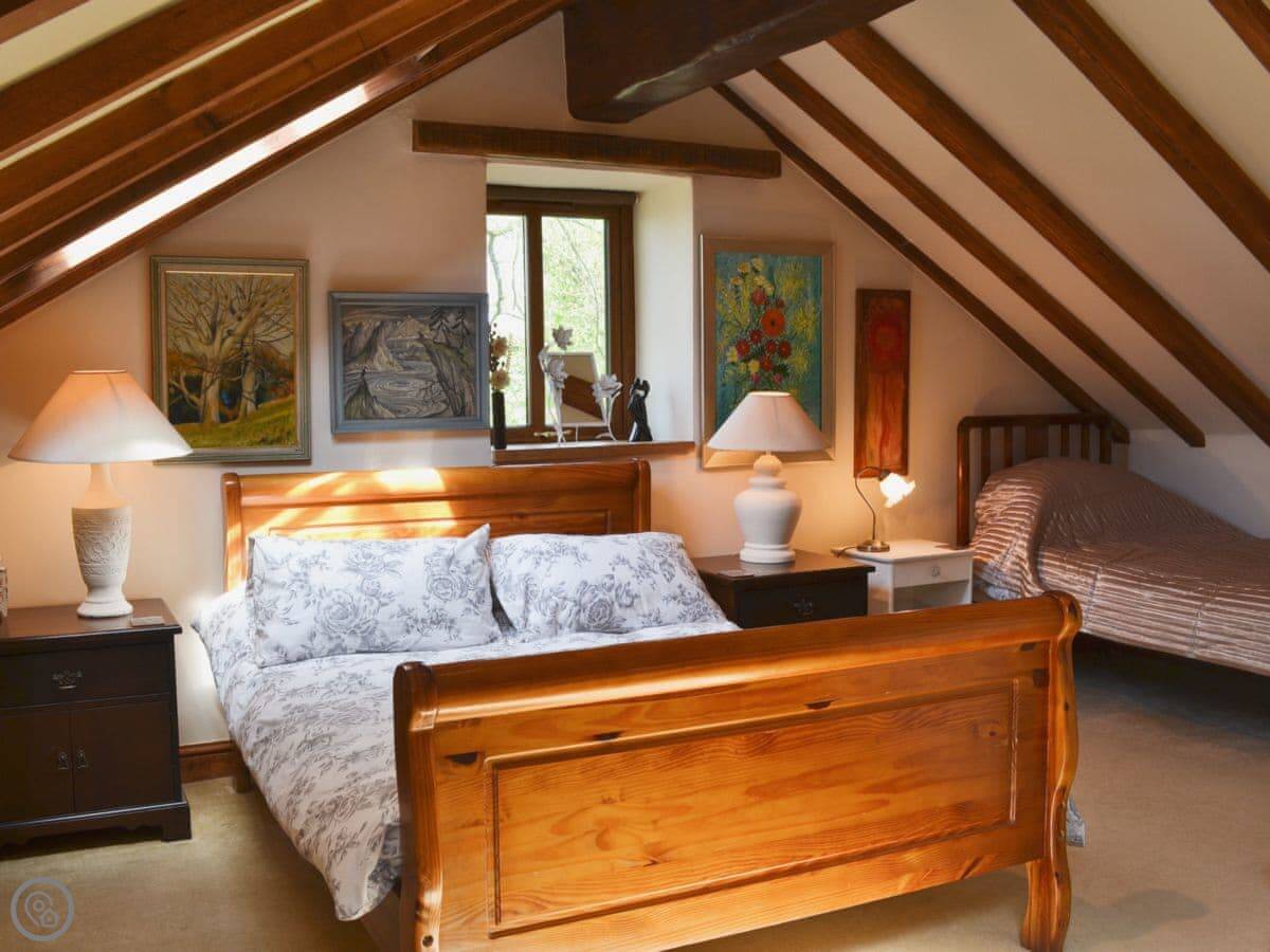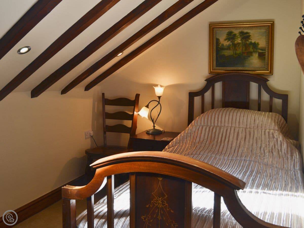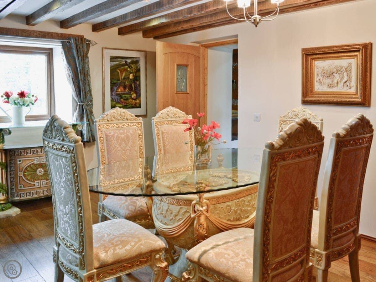 It sleeps eight. Four bedrooms, three bathrooms. It's got a 5 Star rating. That means it's well appointed and finished to a good standard. There are oak beams and wooden floors.