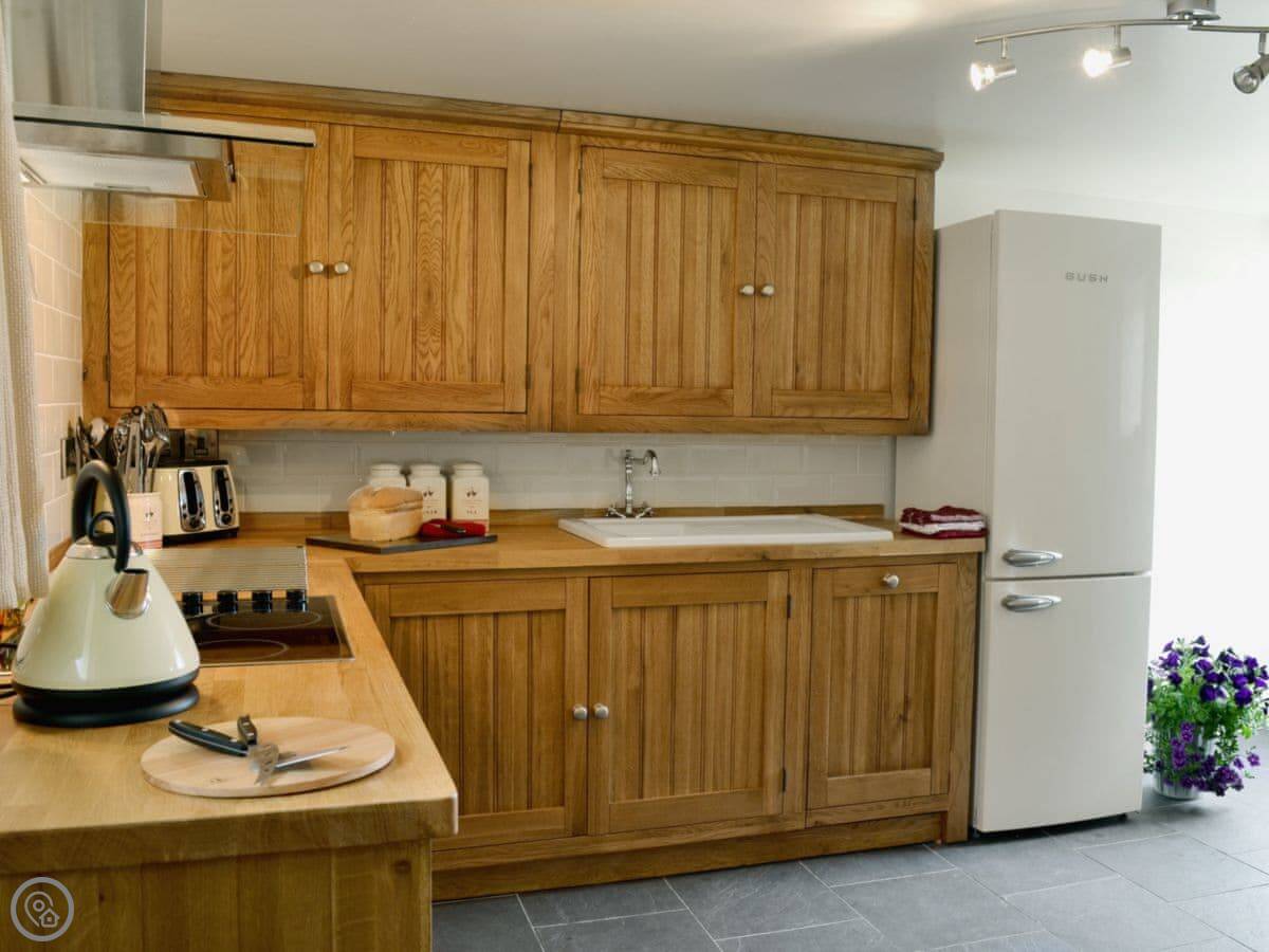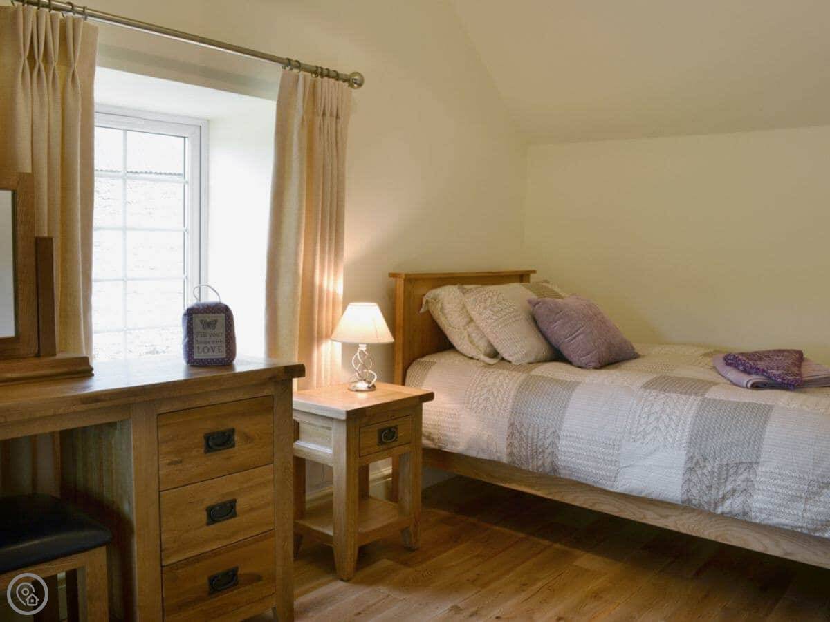 It's a 5 Star place, sleeps six in four bedrooms, with two bathrooms. There's a wood burner, slate floors, beams, that sort of thing. It's been done to a high standard.