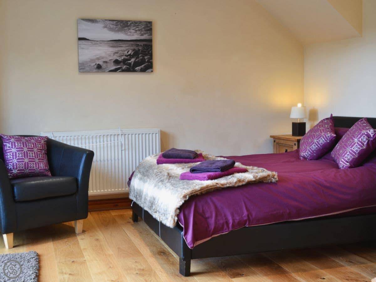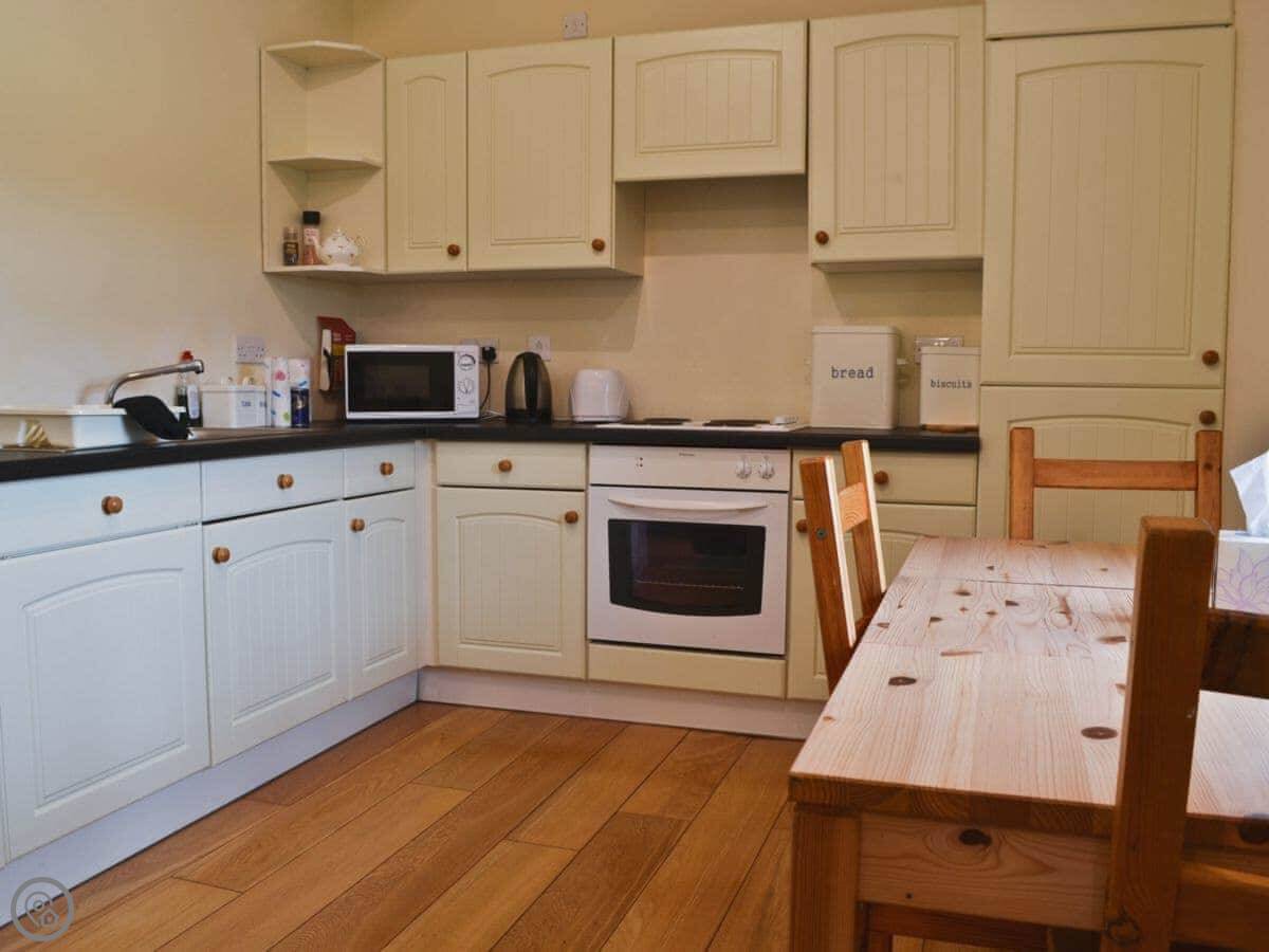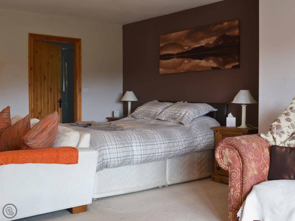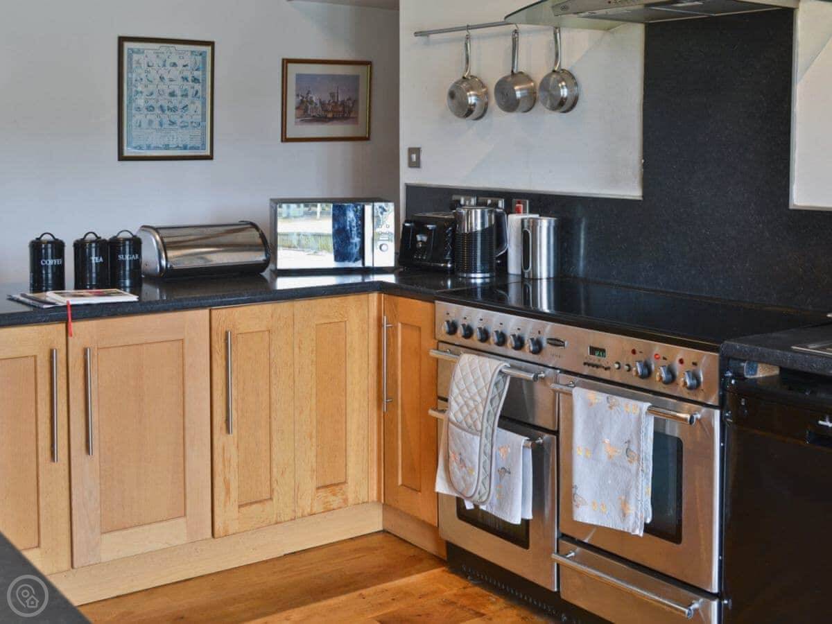 Inside, it's got what you'd expect: a washing machine, dishwasher, TV, wifi, that sort of thing. Bedding and towels are included. There's a cot and a highchair if you need them. You can bring one dog. There's plenty of parking.