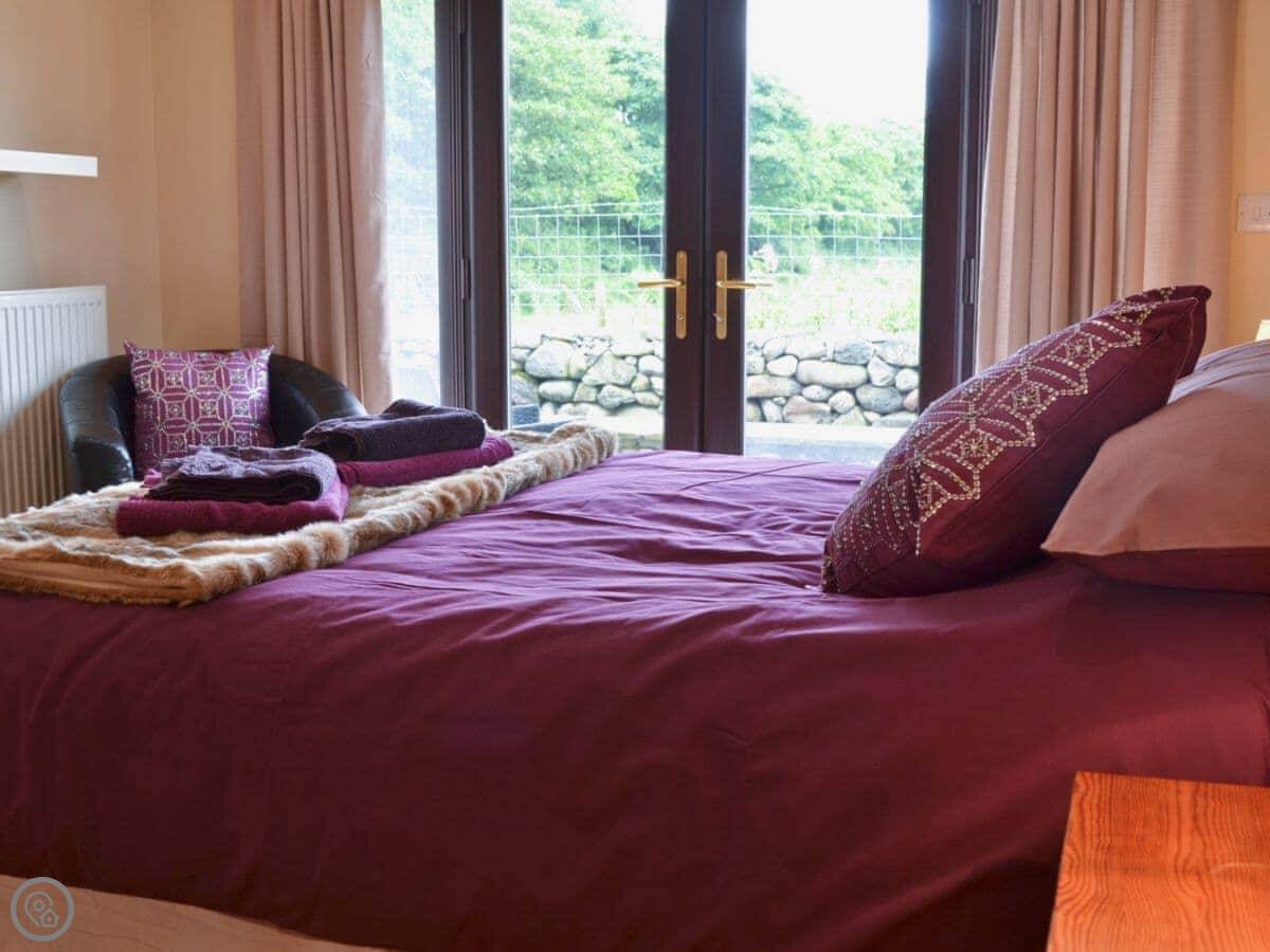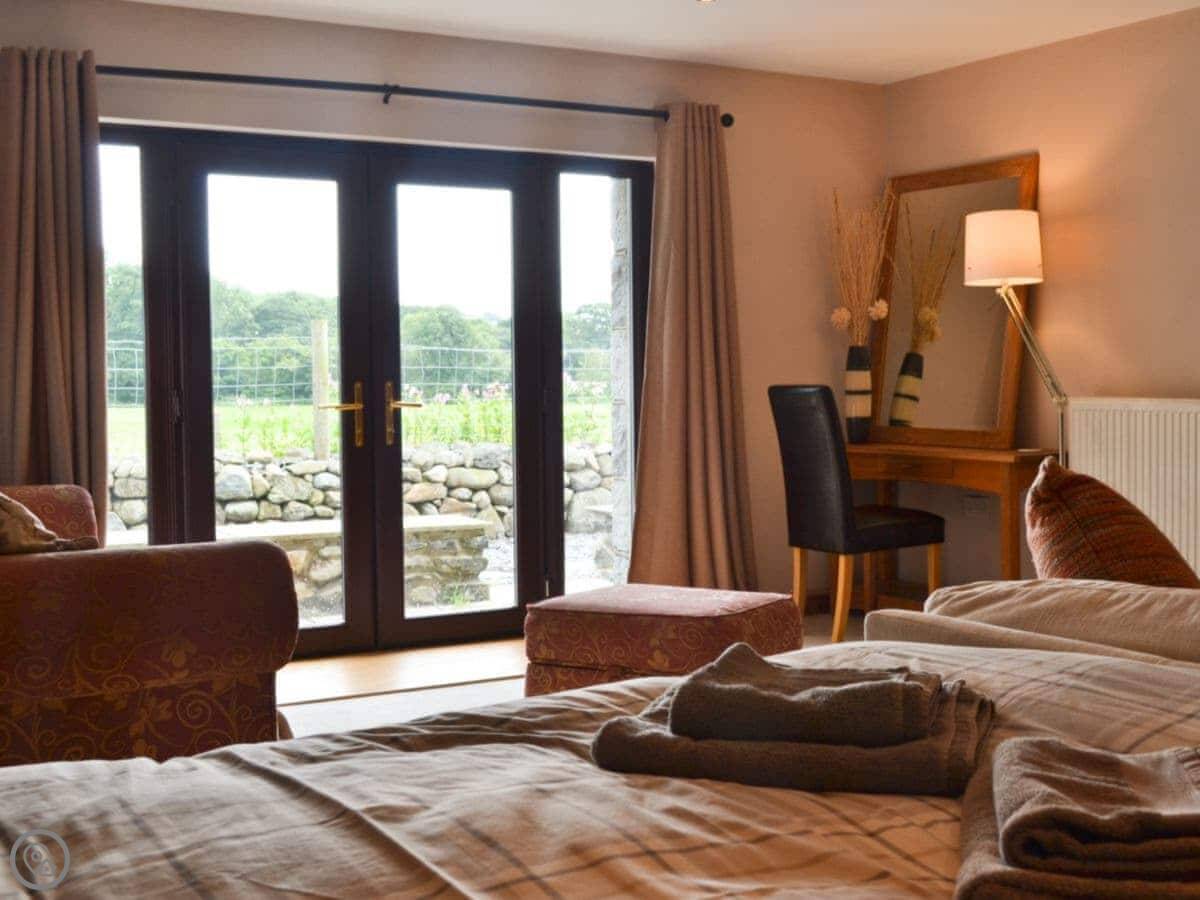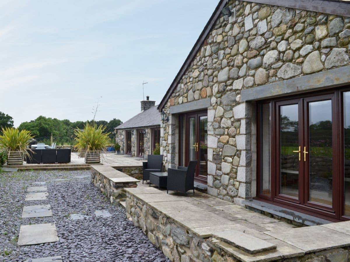 It's called Glanrafon Isaf. It's a converted barn near Llanfaglan, with an annexe attached so it can sleep a lot of people. The river runs right by the garden.