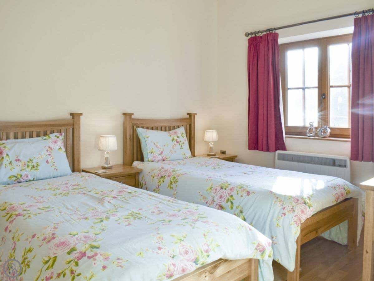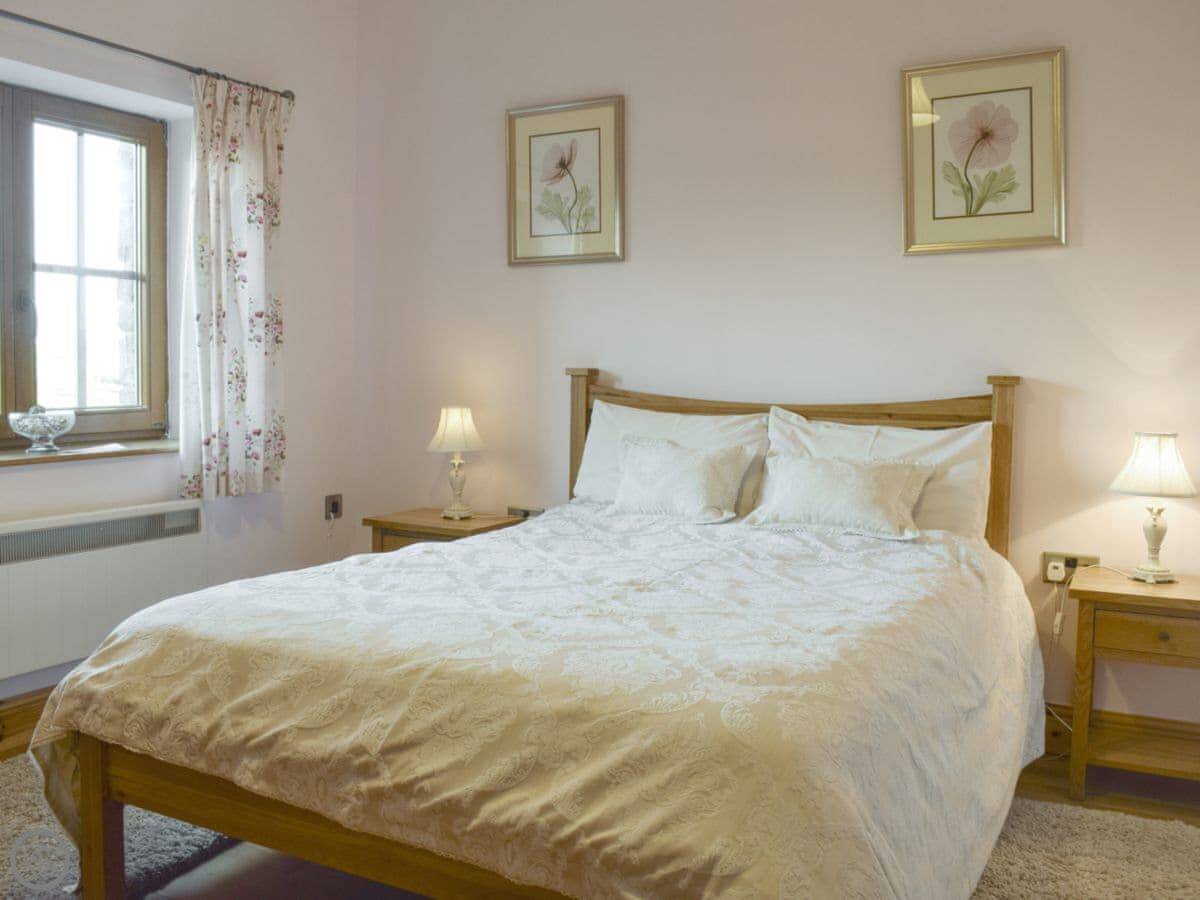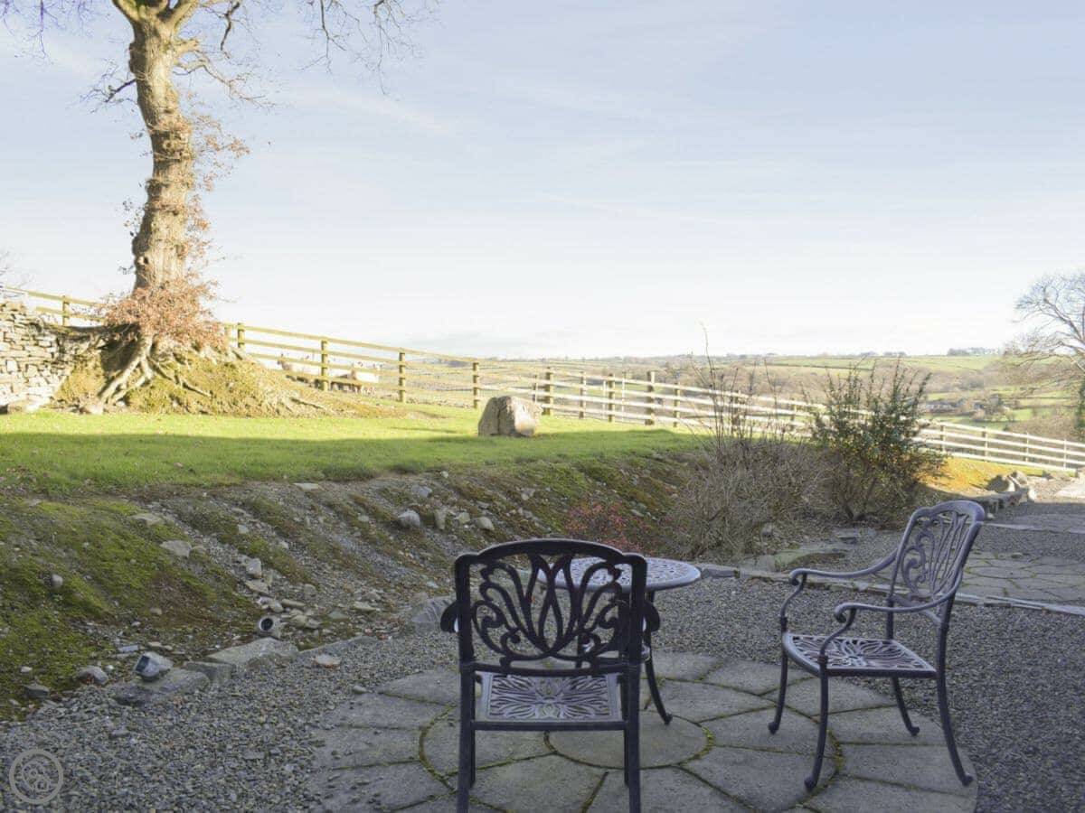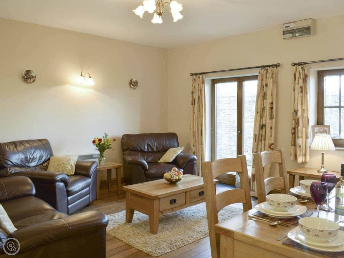 Tan-Y-Dderwen is out near Mydroilyn in Ceredigion. It's a converted barn, so it's long and low. The setting is quiet, just fields and hills.