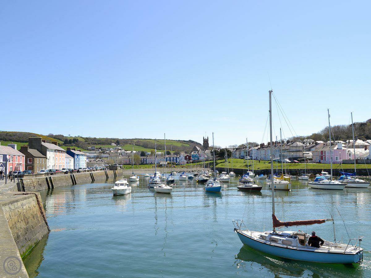 Aberaeron is about six miles. It's a nice little harbour town with shops and places to eat. The coast is dramatic around there. You can sometimes see dolphins from the cliff paths. For a good beach day, National Trust Llanerchaeron is nearby and has access to the river and coast.