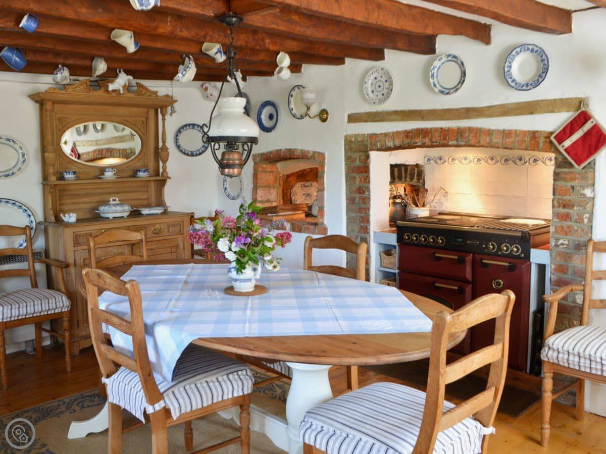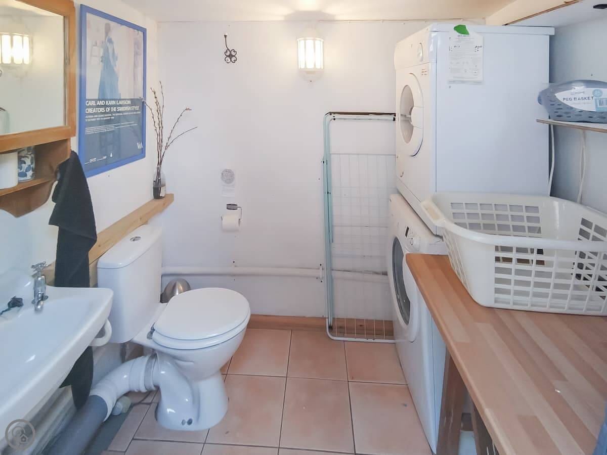 Inside, it's got a woodburner, a dishwasher, a washing machine, and WiFi. Bedding and towels are included. There's a cot and a highchair if you need them. No pets.