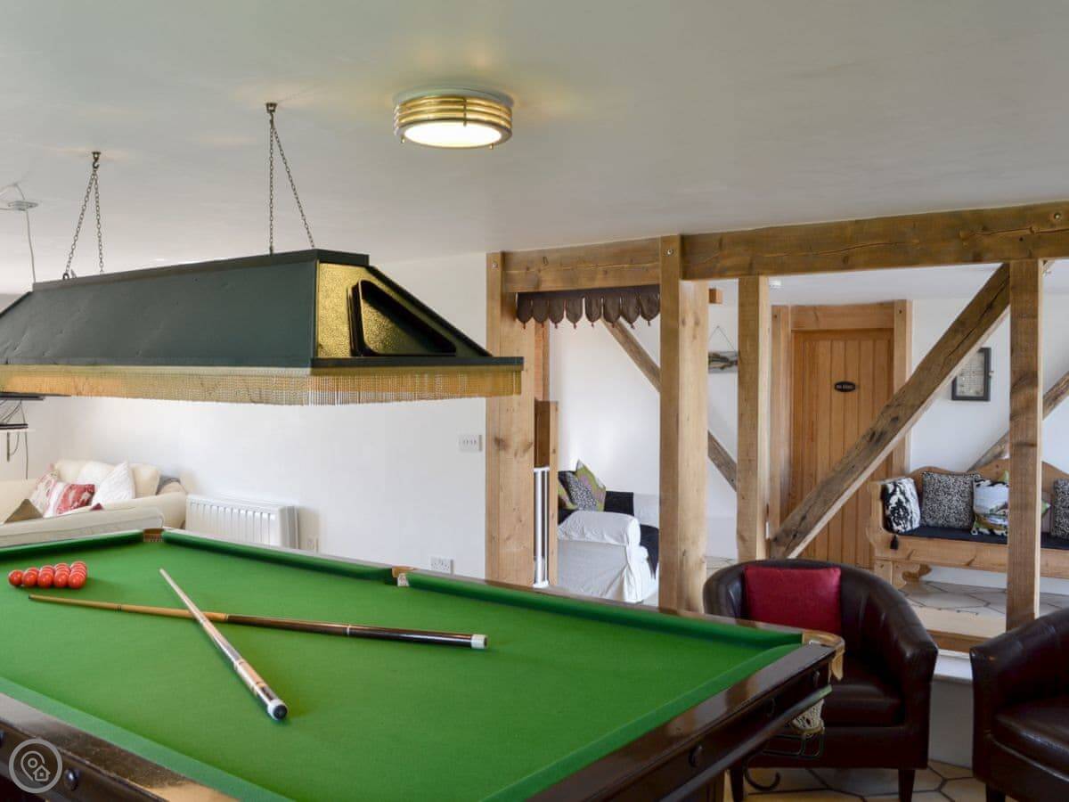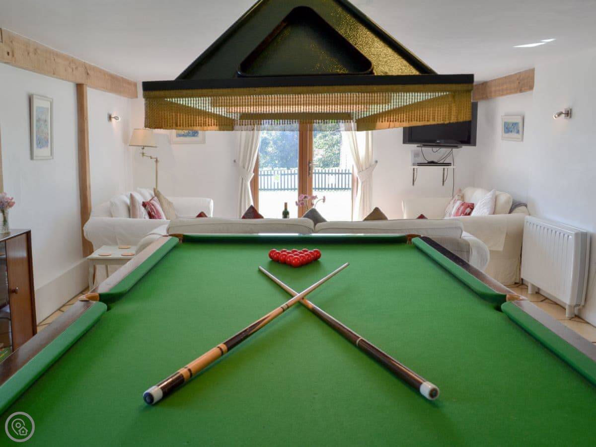 There's a small pool table for a game. Off-road parking is right outside.