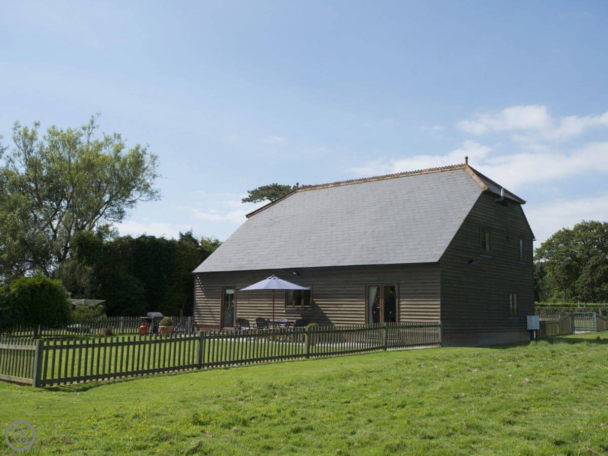 Saunders Oast Barn is at Guestling Green, near Hastings. It's a detached barn that was rebuilt after the '87 storm. It's got a 5 Star rating, which means it's a high-spec place.