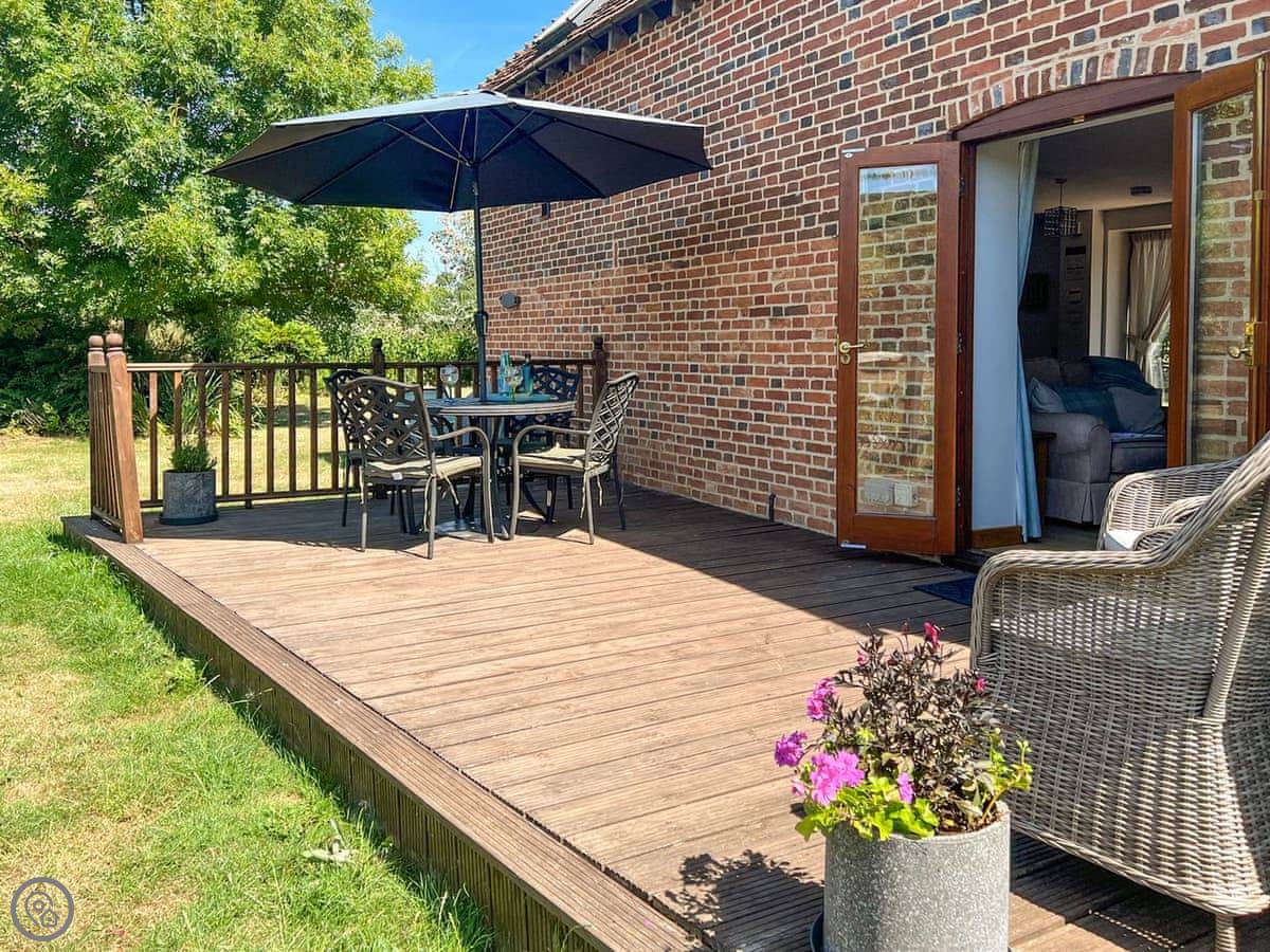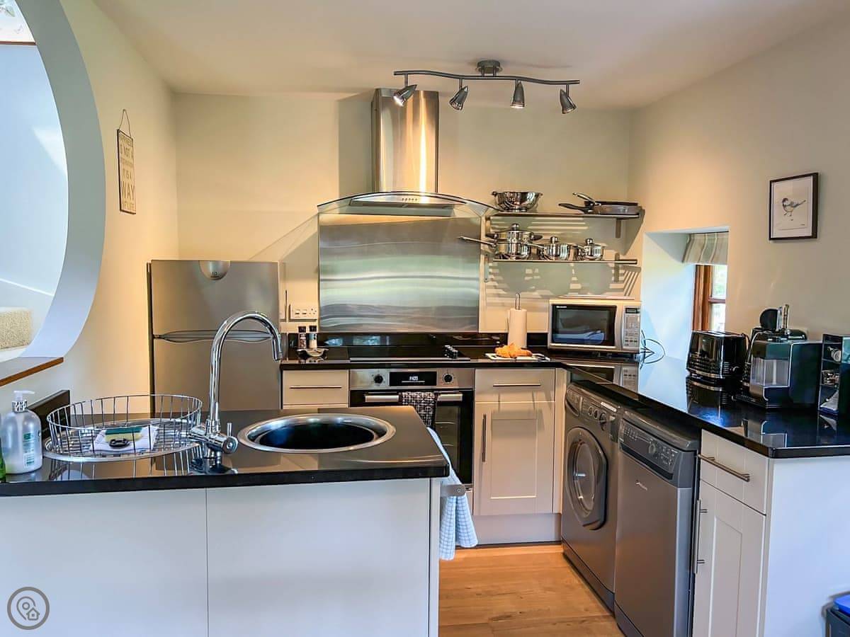 Inside, it's got everything: a washing machine, dishwasher, WiFi,TV. Bedding and towels are included. There's a cot, highchair, and stairgate if you need them. Outside there's a patio garden, a barbecue, and parking.