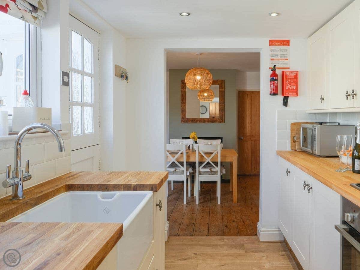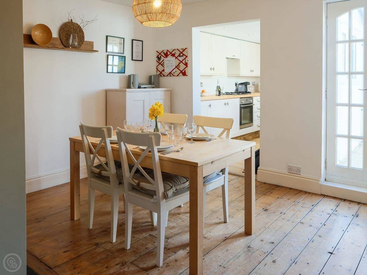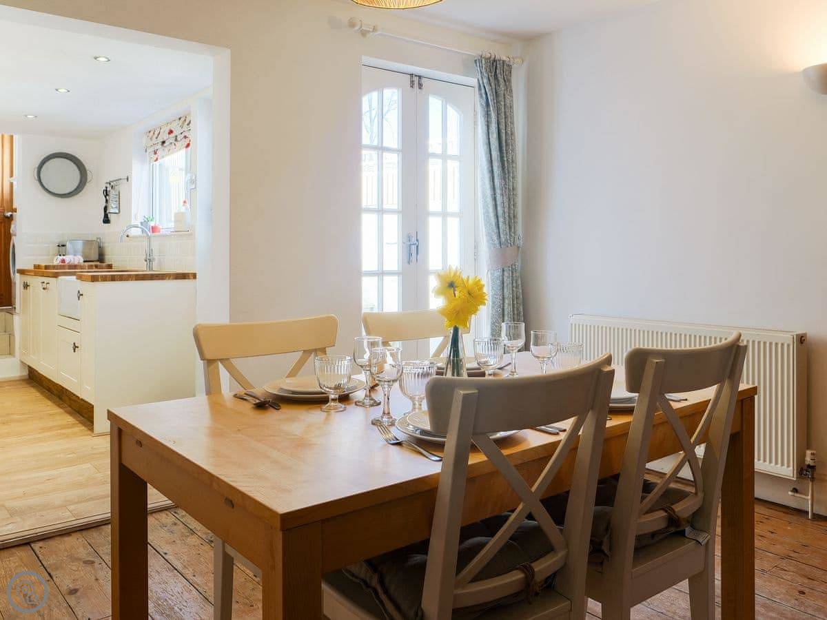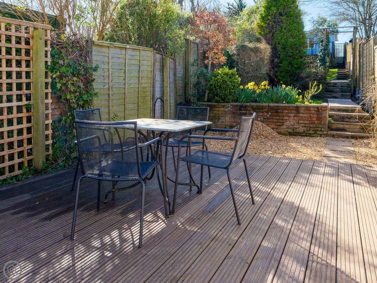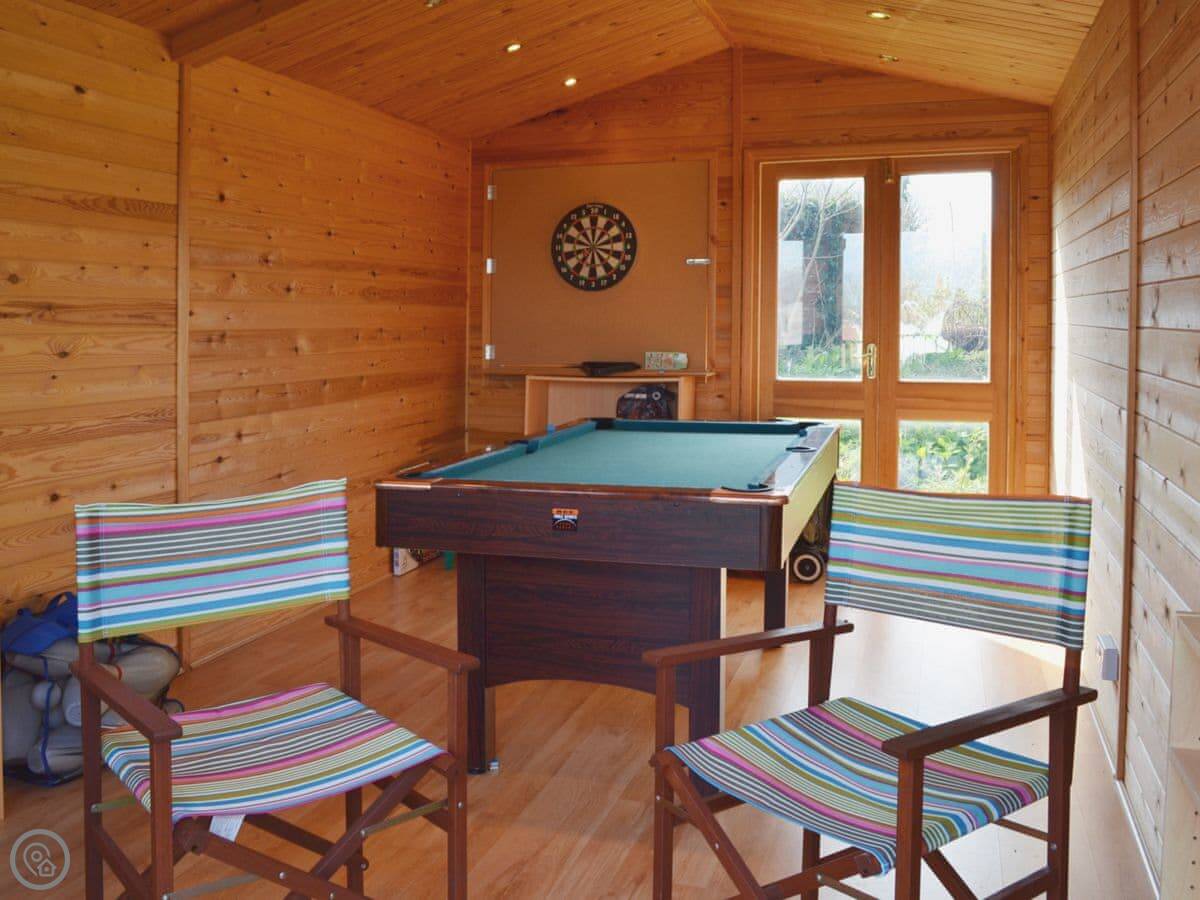 The garden is enclosed, with a patio. There’s a summerhouse with a pool table, darts, and some games. It’s useful if the weather turns. You can bring up to two dogs.