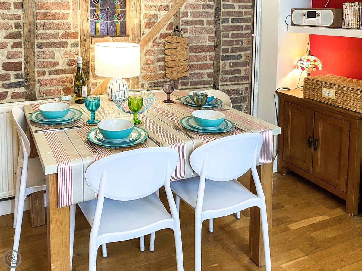 It has a woodburning stove, a dishwasher, WiFi, and parking is included. Bedding and towels are provided. You can bring one dog.