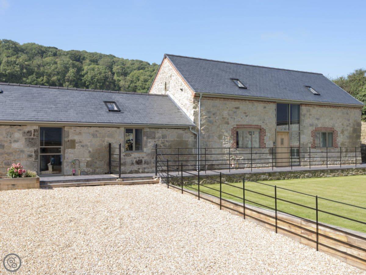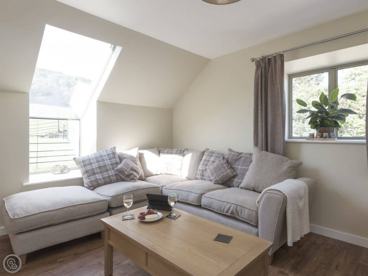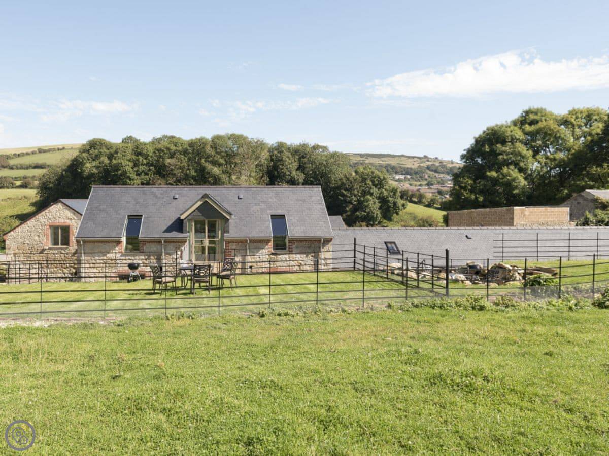 This is Property 1, in a small courtyard near Ventnor. It's a barn conversion, but the living area is upstairs. That's what they mean by reverse level. It gives you a good view out over the fields from the main room.