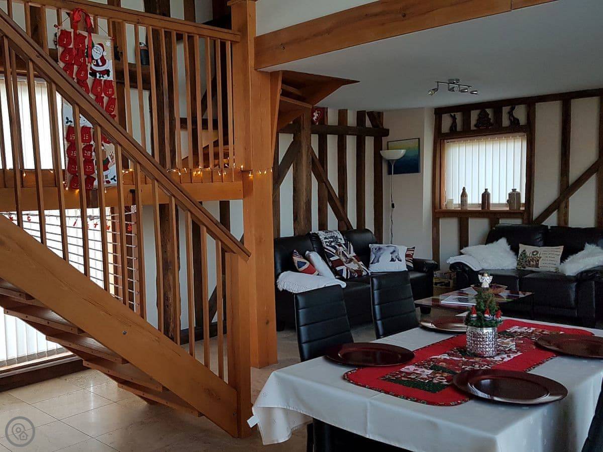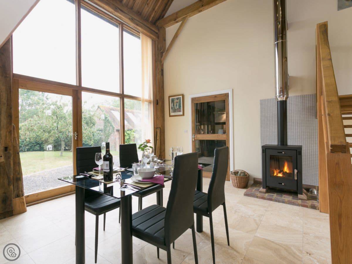Chilsham Barn is in Herstmonceux, East Sussex. It's a barn conversion on our farmland, it's detached and you get the bit of garden and orchard around it just to yourselves. The place is surrounded by fields with our sheep and poultry.